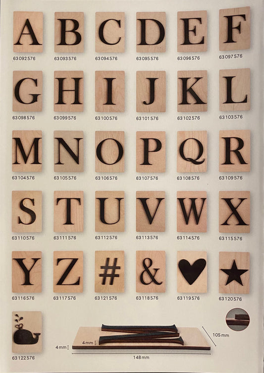 Holzbuchstabe auf Holzunterlage natur verschiedene