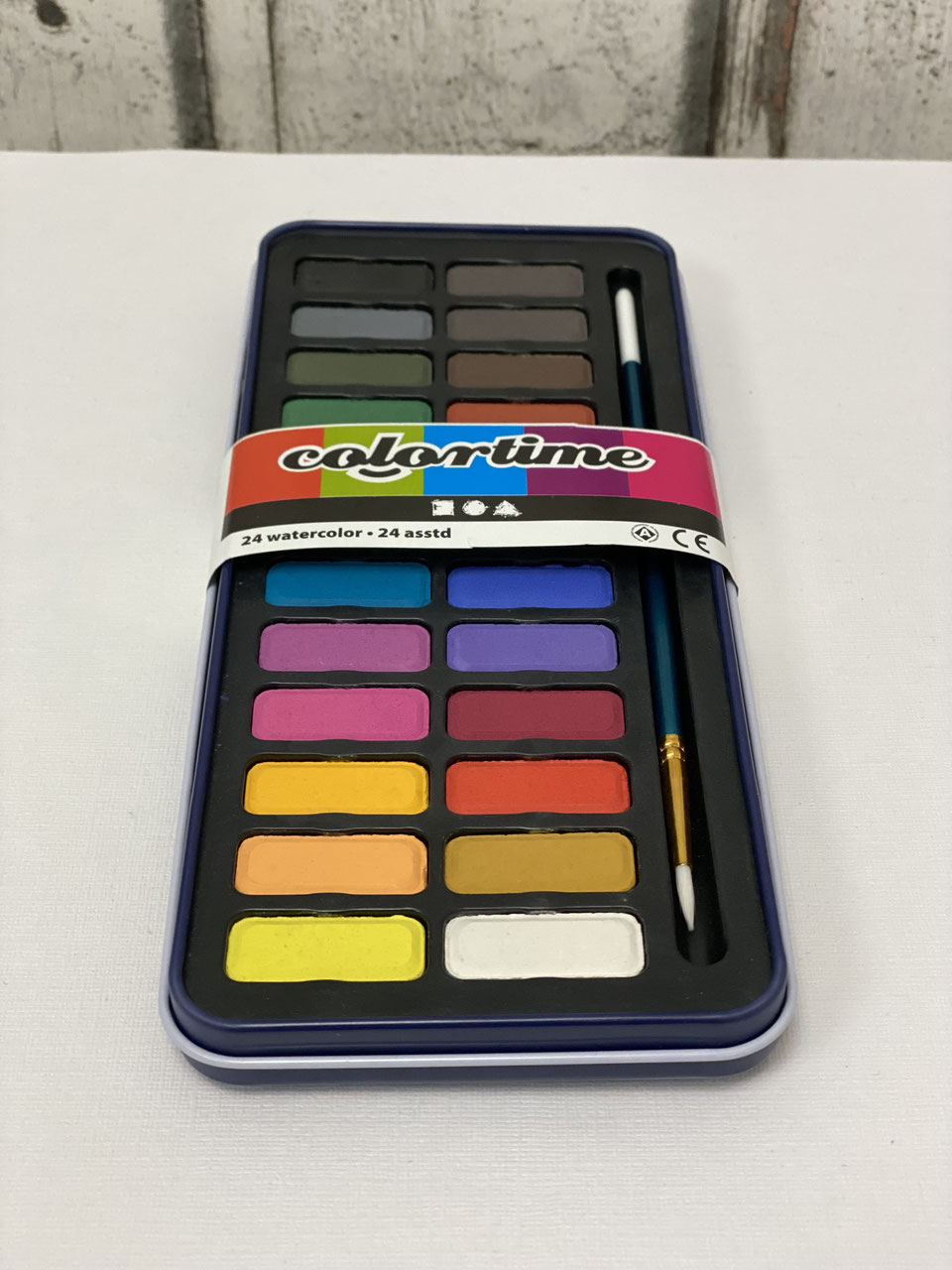 Metallbox mit 24 Farben und einem Pinsel