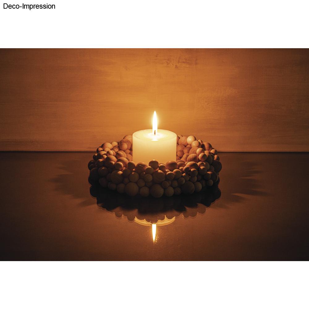 Inhalt: 1 Styroporflachring 17 cm ø, insgesamt 290 Rohholzkugeln in 4 verschiedenen Größen von 10 – 20 mm ø. Zusätzlich wird eine Heißklebepistole mit Heißklebesticks benötigt.