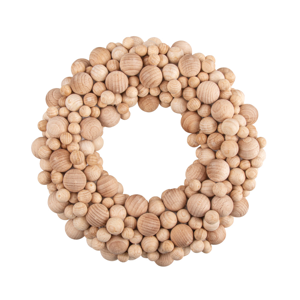 Einfach und schnell umzusetzen: In unserem DIY-Set sind alle Teile enthalten, die für diesen modernen Kugelkranz (Durchmesser 20cm) benötigt. Die knapp 300 beiliegenden Rohholzkugeln werden aus hochwertigem deutschem Buchenholz hergestellt.