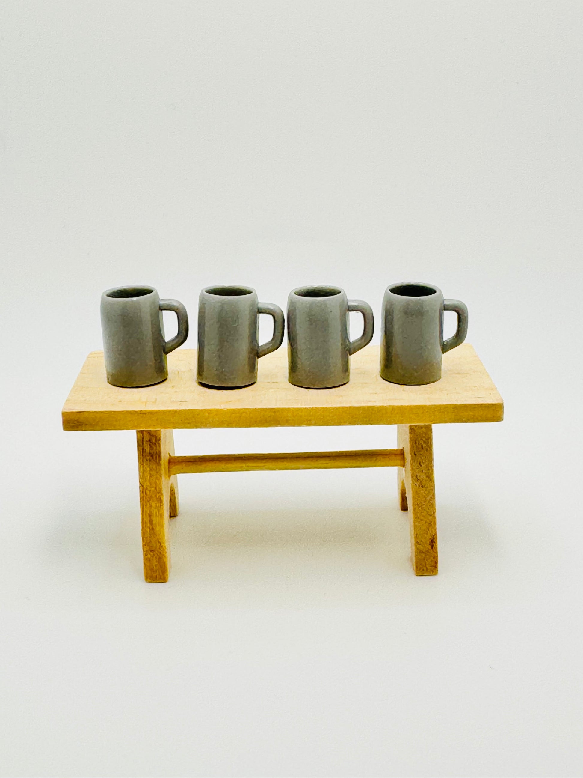 Miniatur Becher/Krüge, für Miniaturwelten. Die Krüge können mit Acrylfarbe eingefärbt und zu Kaffebechern umfunktioniert werden. 12 x 17 mm. 4 Becher für kleine Wichtel, Puppenhäuser und Mäusefamilien.