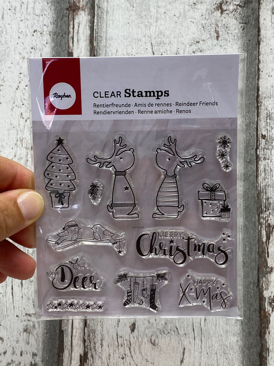 Mit diesem Stempelset gelingen dir kreative Stempelexemplare. Clear Stamps „Rentierfreunde“, Setgröße 102,5 x 97 mm, 10 Motive und 3 Texte, Material: hochwertiges, langlebiges Photopolymer Transparente Stempel erleichtern dir punktgenaues Arbeiten. Das ist besonders wichtig, wenn du mehrere Stempelabdrucke platzieren möchtest. Clear Stamps und ein passender Acryl-Stempelblock verschaffen dir Stempelerfolge. Die einzelnen, selbstklebenden Stempel kleben zwischen zwei durchsichtigen, stabilen Folien. Hier sind sie sicher aufbewahrt und können immer wieder benützt werden. Ziehe das gewünschte Motiv von der Trägerfolie und klebe es auf den Acryl-Stempelblock. Drücke das Stempelmotiv auf ein Stempelkissen und stemple damit die gewünschte Stelle. Du kannst den Stempel mit Wasser reinigen. Stempelkissen findest du in vielen Größen, Formen und Farben im Shop. Auf normalem Papier kannst du jedes Stempelkissen benützen. Wenn du auf Folien, Glanzpapier, Glas, Kunststoff, Metall, Keramik, Holt, Modelliermasse, Beton, Fotos, Leder… stempeln willst, dann Stempelkissen benützen, die speziell für diese Untergründe geeignet sind.