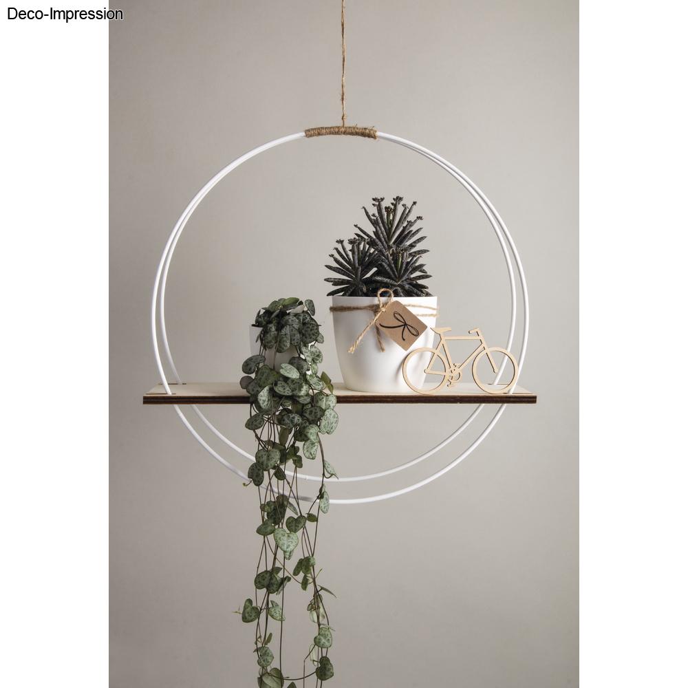 Das Holzboard wird im unteren Drittel zwischen die beiden Metallringe geklemmt und nach Wunsch fixiert. Die beiden Metallringe werden oben zusammengenommen und durch eine Sisalkordel-Wicklung, die zugleich als Aufhänger dient, zusammengehalten. Einfach, schnell und vielseitig einsetzbar, z.B. frei hängend, im Fenster, an der Haustüre oder zur Raum- und Wanddekoration. Geeignet für kleine Lieblingsdinge, Mini-Vasen mit frischen oder getrockneten Blumen und vieles mehr.
