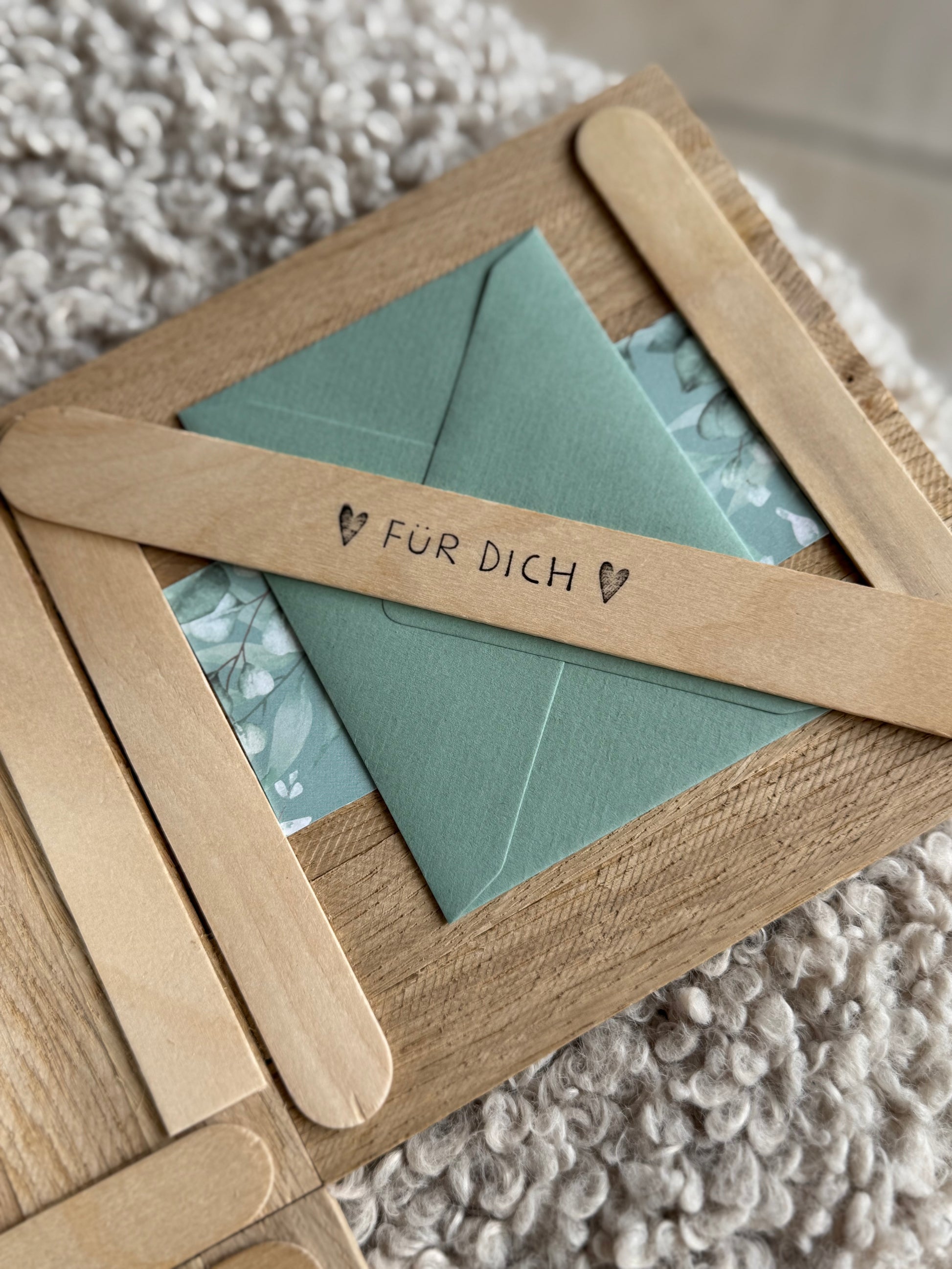 Die passenden DIY-Klötzchen incl. Leim, die Holzstäbchen L, Holzstäbchen M und Tacky Tape bekommst du direkt in meinem Shop