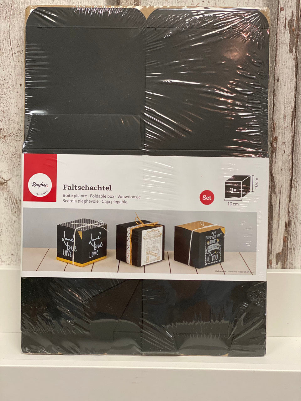 Und nach dem Auspacken einfach wieder auffalten und platzsparend aufheben. Übrigens, Faltschachteln sind auch in schwarz erhältlich.