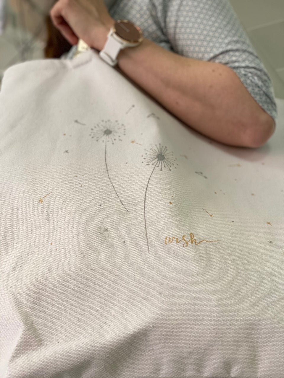 Den Stoff sollte man vor dem Bemalen immer waschen (ohne Weichspüler), damit er Appretur frei ist und die Farbe optimal haftet. Nach dem Trocknen noch bügeln und los geht´s.