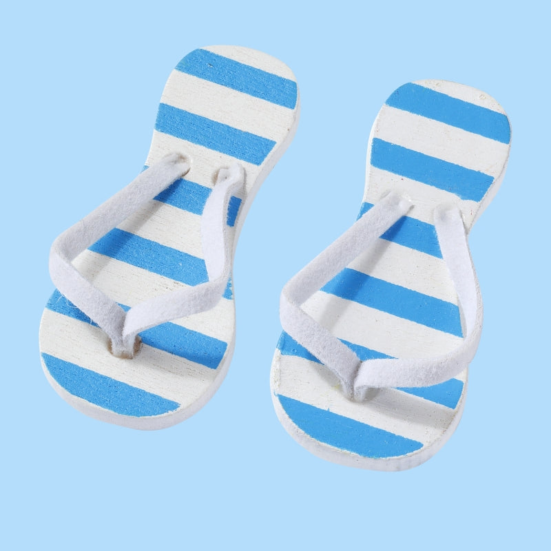 Diese Flip Flops sind perfekt für kleine Wichtel mit einer Größe von 4,5 cm. Sie kommen im praktischen Beutel mit 2 Paaren. Holzsohle mit Kunstleder. Niedliches Zubehör für Puppenhäuser und Wichtelkulissen. Für maritime Geldgeschenke.