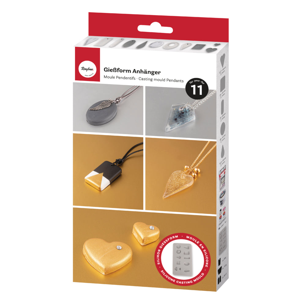 Durch das dehnbare und flexible Silikonmaterial sind die gegossenen Anhänger nach dem Trocknen besonders leicht zu entformen und können mit Acrylfarben, Markern, Deco-Metall und vielem mehr bemalt, beschriftet und verziert werden.