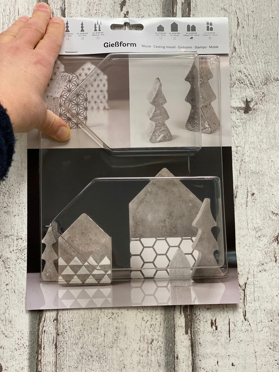 4 Häuser 5,5-10,5cm, ca.680g Beton
