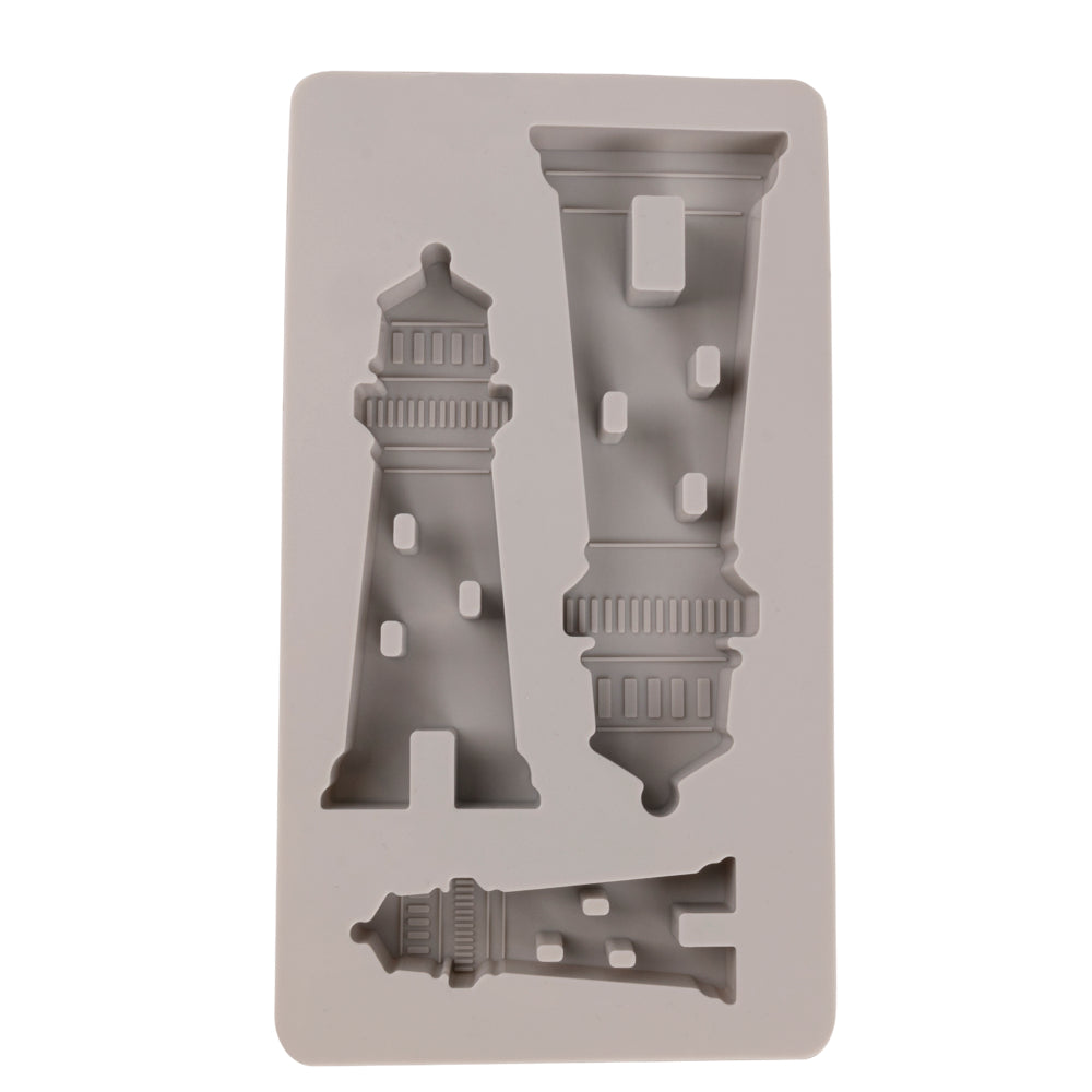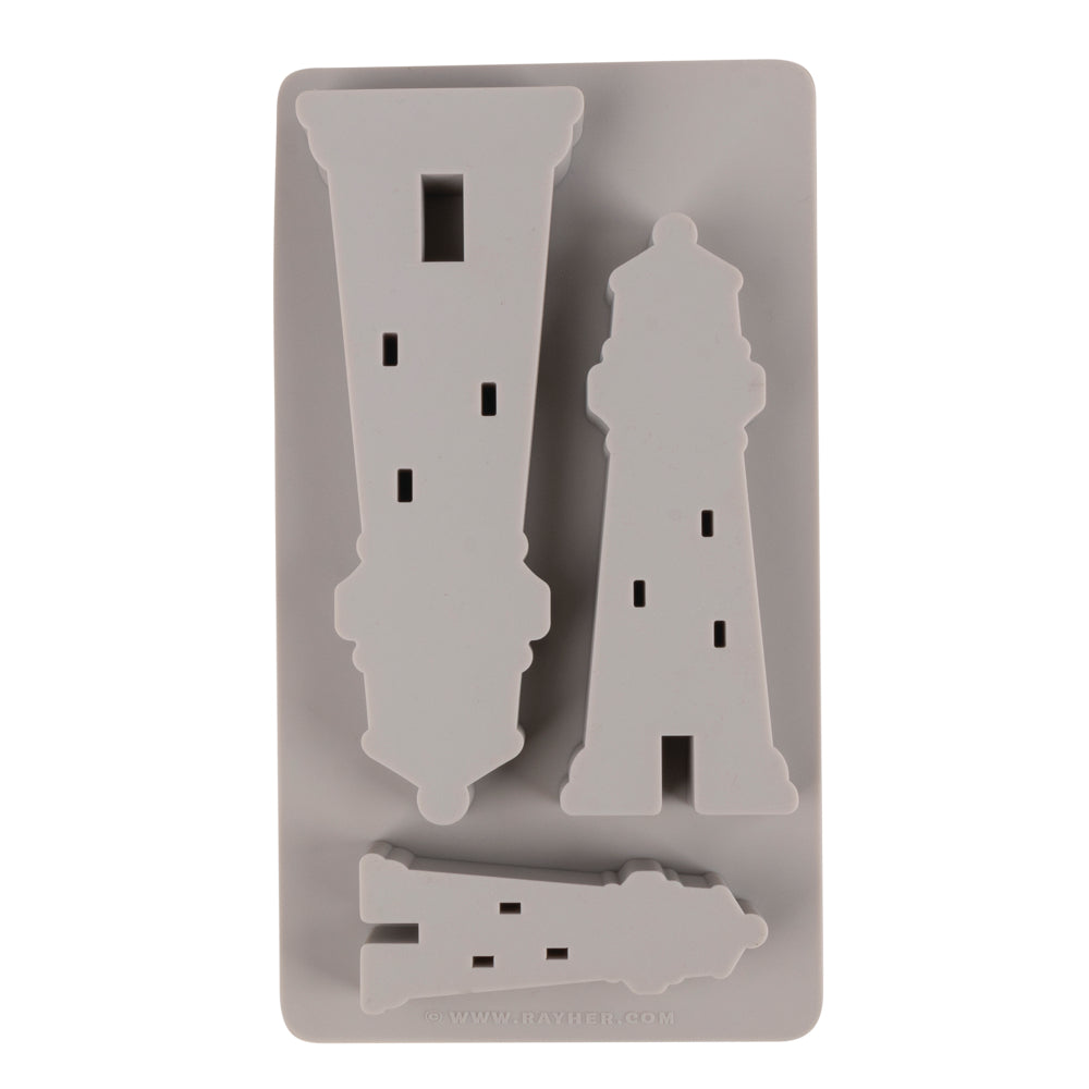 Mit der hochwertigen Silikon-Gießform gelingen drei Leuchttürme, gegossen aus Kreativ-Beton, Schmuck-Beton, Raysin-Gießpulver, Gießharz oder Wachs. (Nicht für Lebensmittel geeignet).