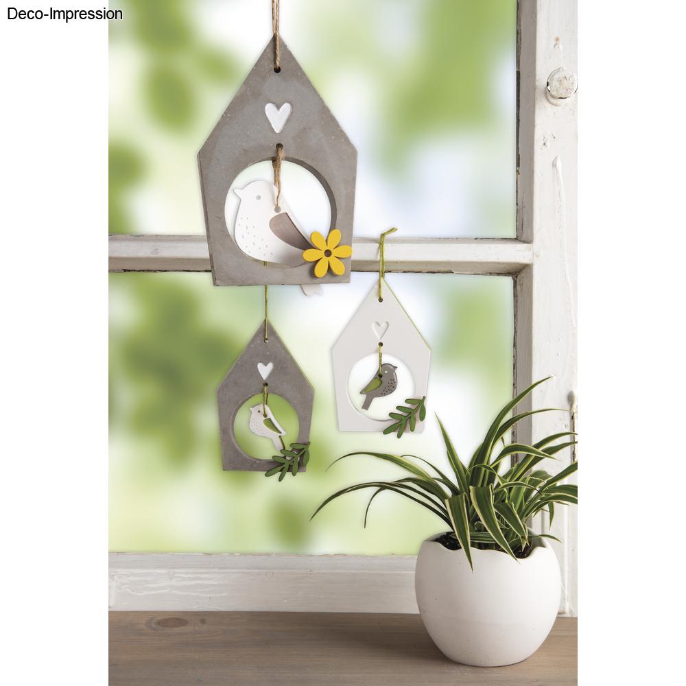 Maße der Motive: Vogelhaus 11 x 17,3 cm, Vogel 9 x 5,2 cm, Tiefe je 2 cm.