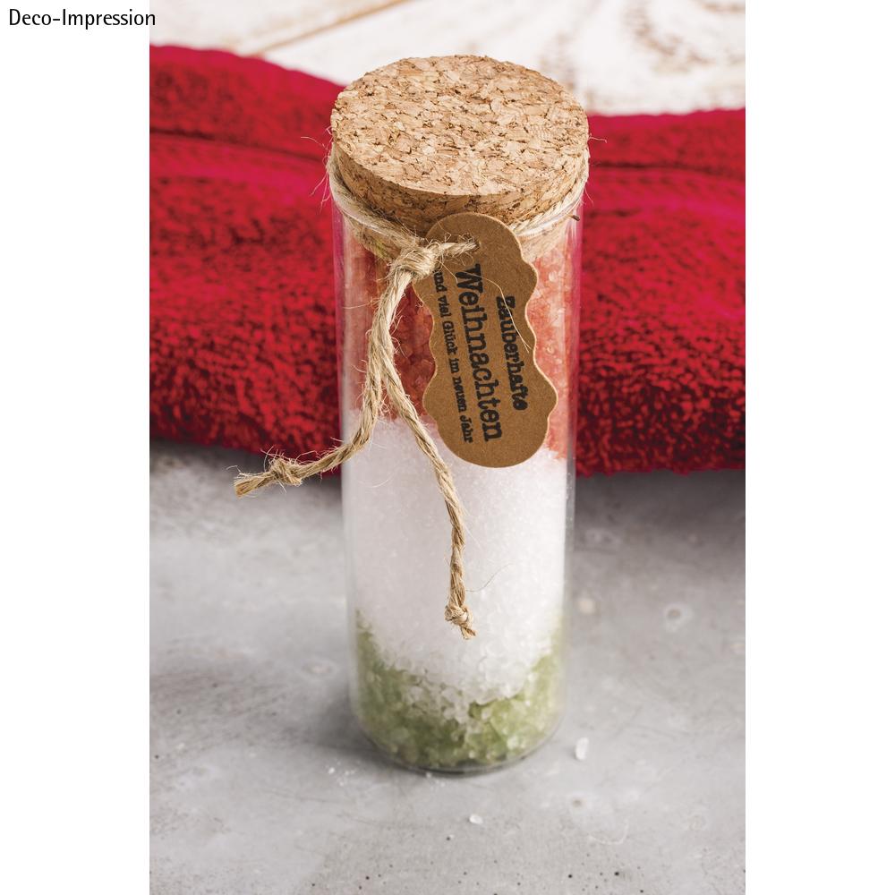 Das Glas-Gefäß mit Korkdeckel ist 13,5 cm hoch und besitzt einen Durchmesser von 4,5 cm. Die mögliche Füllmenge beträgt 150 ml.