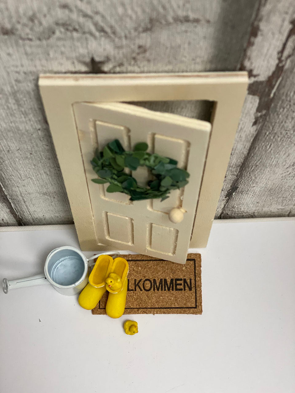 Kleines Gummistiefel Paar (1 Teil) 4 x 3 cm. Für Wichtelkulissen, Puppenhäuser und Geldgeschenke.