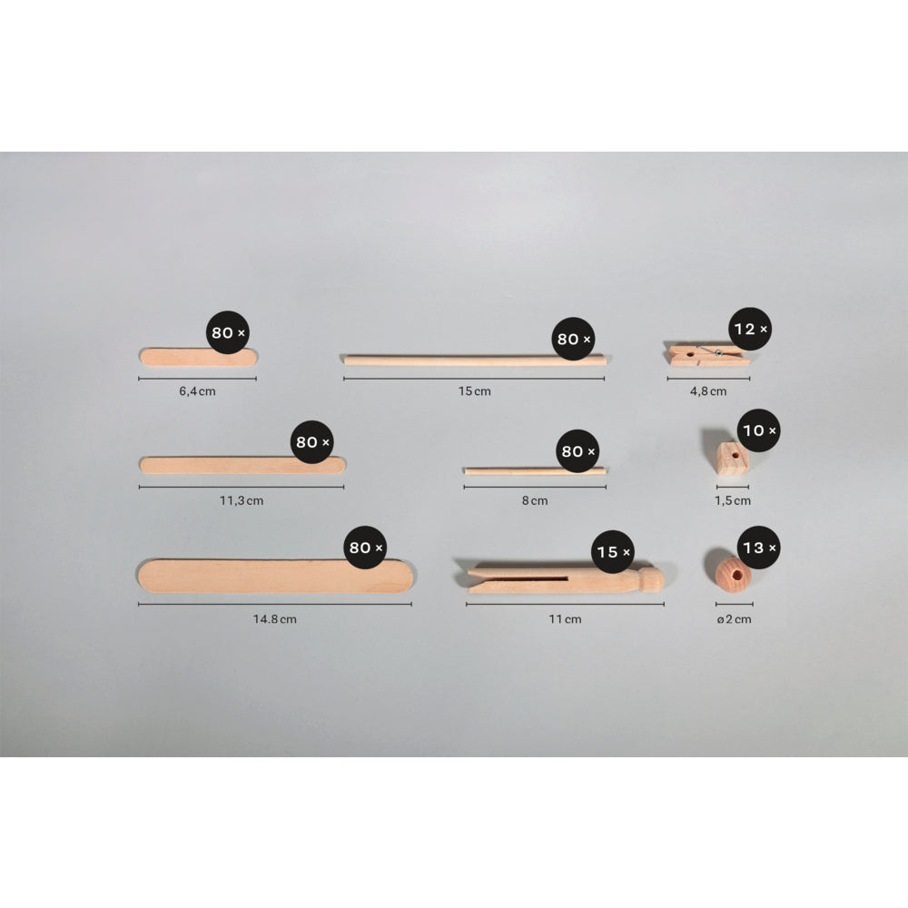 Grenzenloser Bastelspaß bei Klein und Groß ist garantiert. Schlüsselanhänger, Püppchen, Zettelhalter, Flugzeuge und vieles mehr entstehen aus den verschiedenen Holzteilen. Der Fantasie sind keine Grenzen gesetzt.