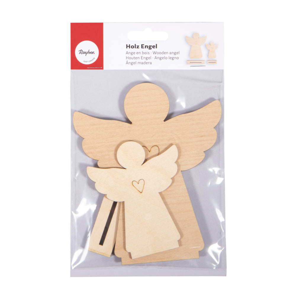 Engel aus Birkenholz, 4teiliges Set aus FSC-zertifiziertem Holz, d.h. aus verantwortungsvoller Waldwirtschaft, produziert.