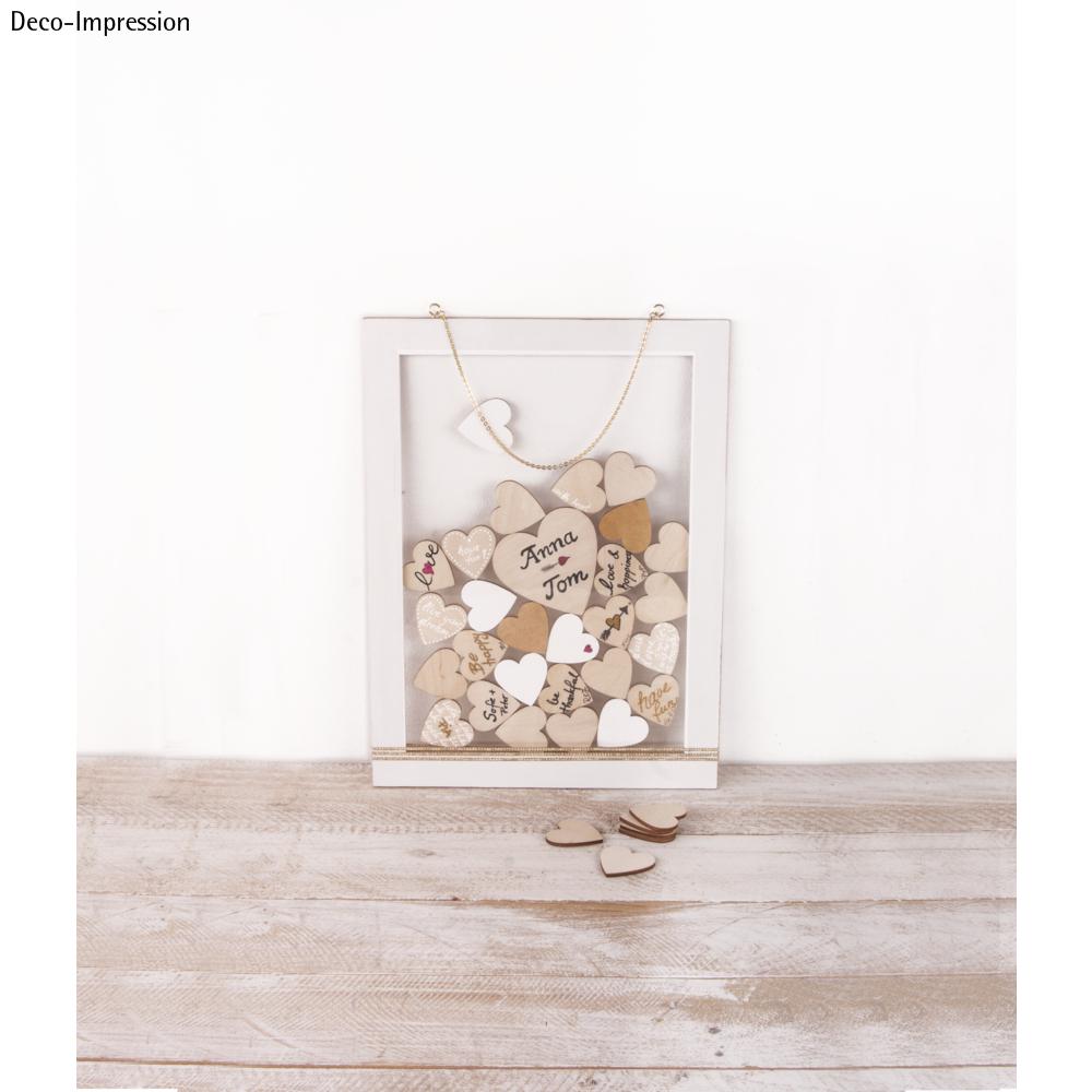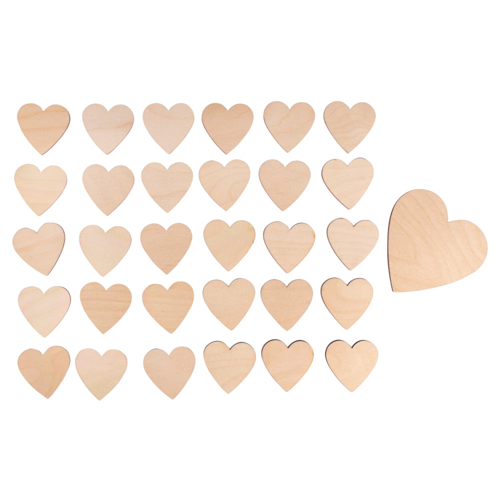 Box mit 31 Holzherzen, 1 großes Herz 8cmø + 30 kleine Herzen 4cmø, Stärke 3mm