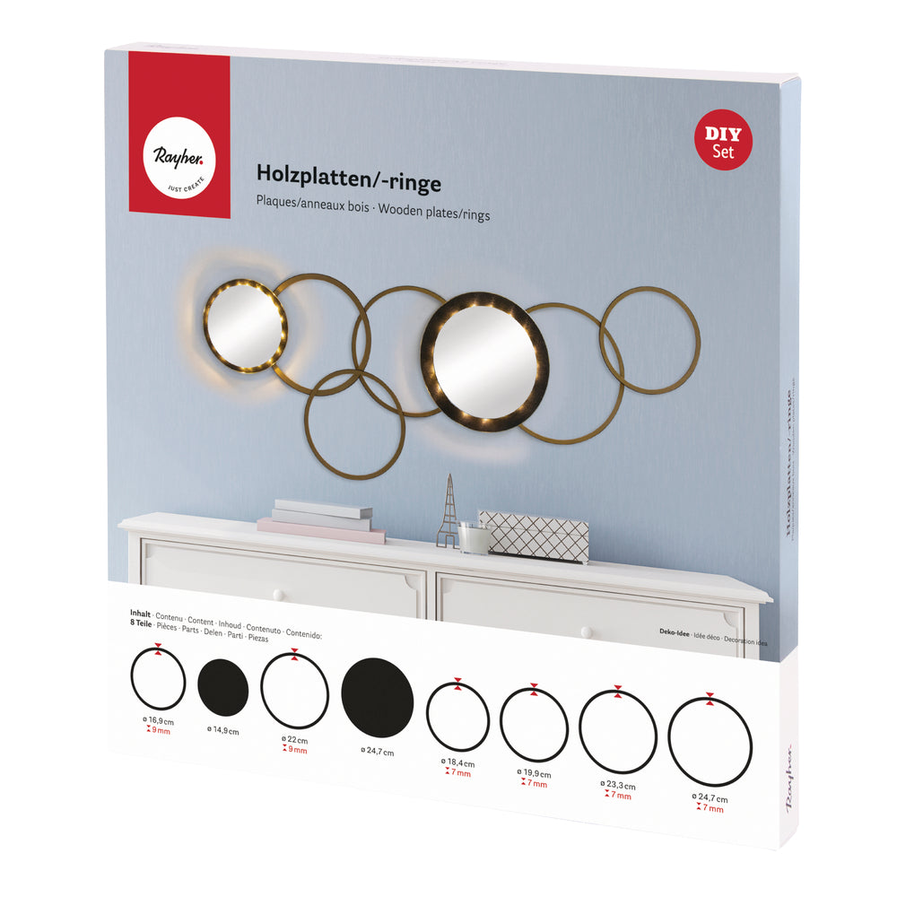 Das Set ist abgestimmt auf die Rayher-Spiegelzuschnitte Art. 46452000 + Art. 46453000 und hergestellt aus FSC-zertifiziertem Holz aus verantwortungsvoller Waldwirtschaft.