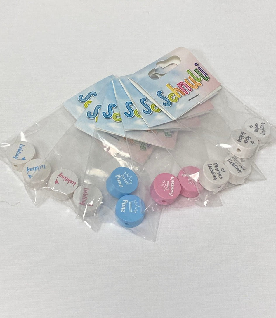 Schnulli-Holzscheiben 20 x 10 mm beschriftet