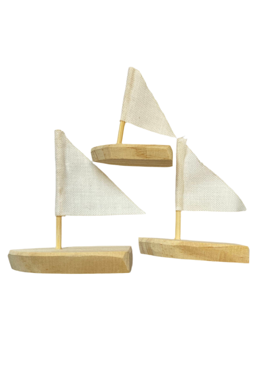 Kleine Holzsegelboote, für maritime Dekorationen im Kerzenglas, für Geldgeschenke und für Miniaturwelten.