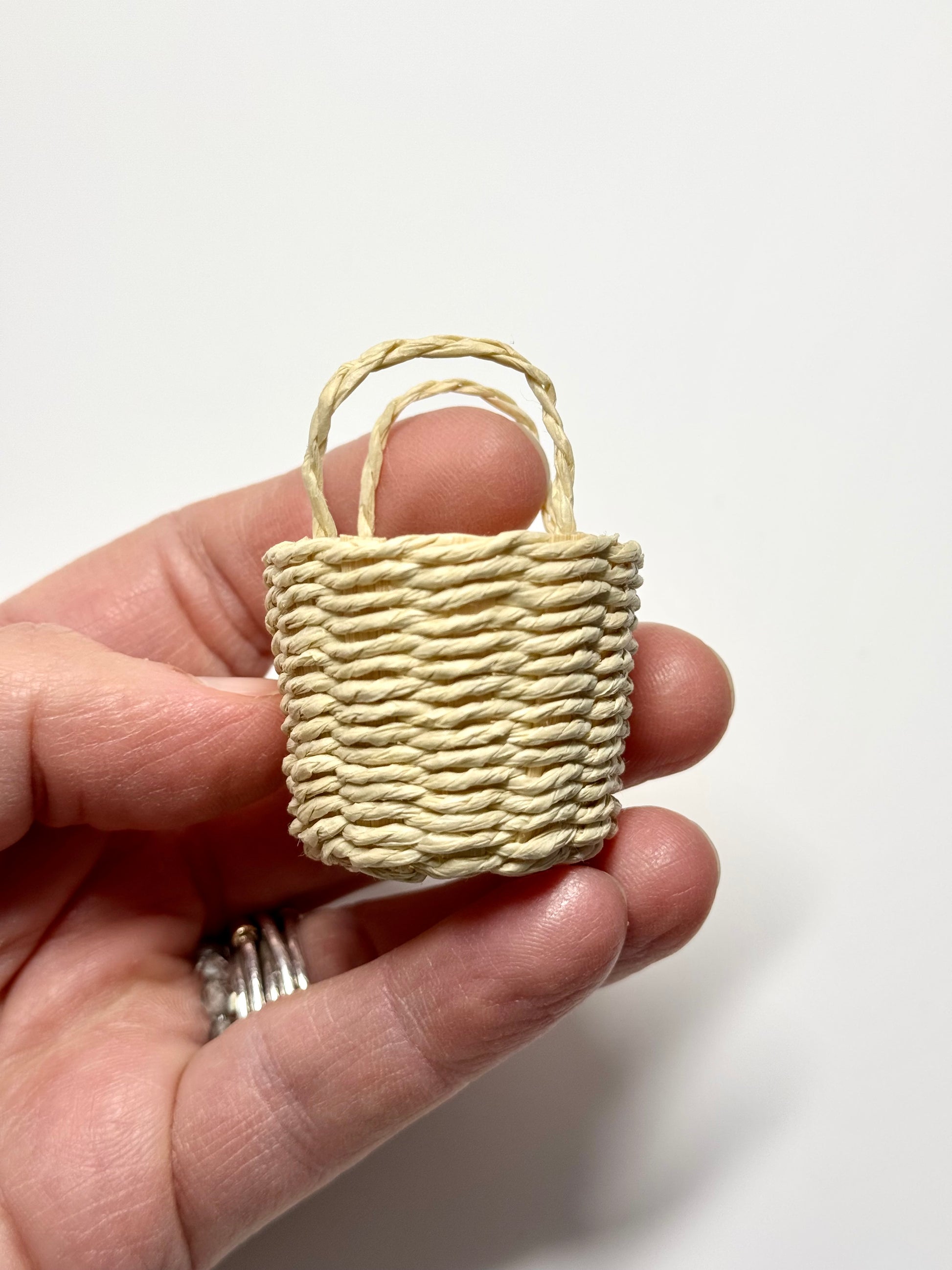 Kleine niedliche Korbtasche für Wichtel und zum Spielen. Mit ihrem handgefertigten Flechtdesign ist sie nicht nur ein süßes Accessoire, sondern auch robust und langlebig. Ideal auch als Badetasche in der Wichtelkulisse. Auch eine hübsche Miniatur im Puppenhaus oder Maileg Mausehaus. Schön für Geldgeschenke.