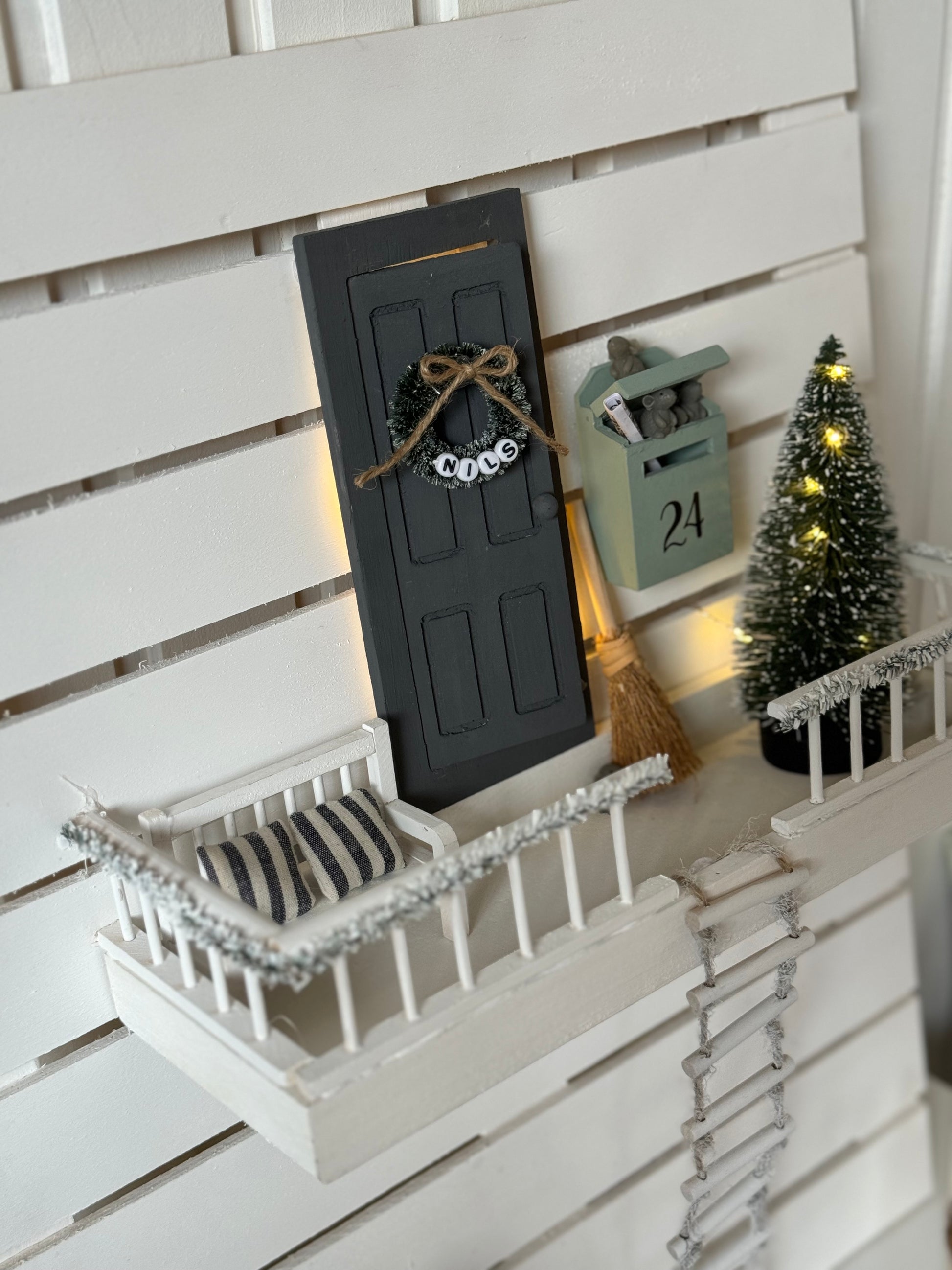 Vielleicht zieht auch bei dir bald ein Wichtel ein! Mit diesem exklusiven Kreativset erschaffst du eine zauberhafte, magische und kleine Kulisse mit Balkon ...ein idealer Ort für Wichtelabenteuer. Die kleine Strickleiter ermöglicht deinem Wichtel den Aufstieg zu seinem neuen Lieblingsplatz. Die Wichteltür und die Umrandung für den Balkon ist im Set enthalten und bildet mit der Balkonplatte einen einladenden Eingangsbereich, mit viel Platz zum Dekorieren.