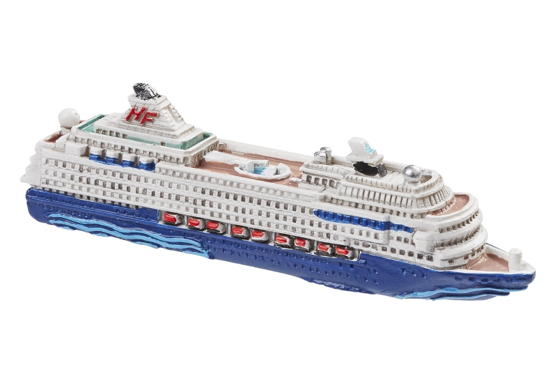 Miniatur Schiff aus Polyresin zur Dekoration von Urlaubs-Szenen. Für Geldgeschenke und Reisegutscheine. Niedliches Zubehör auch in anderen Miniaturwelten.