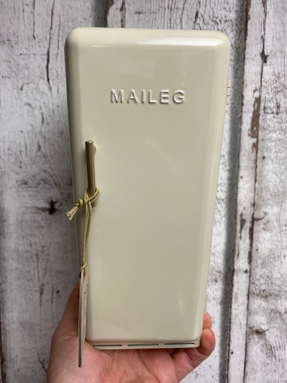 Dieser Miniatur-Kühlschrank von Maileg ist perfekt für das Maileg-Haus! Die Türe lässt sich öffnen und bietet echten Stauraum im Inneren. In der Farbe creme ist er zudem ein stilvolles Accessoire für die Mäuse-Welt. Das ist das "coolste" Haus, das deine Mäuse-Freunde je gesehen haben!