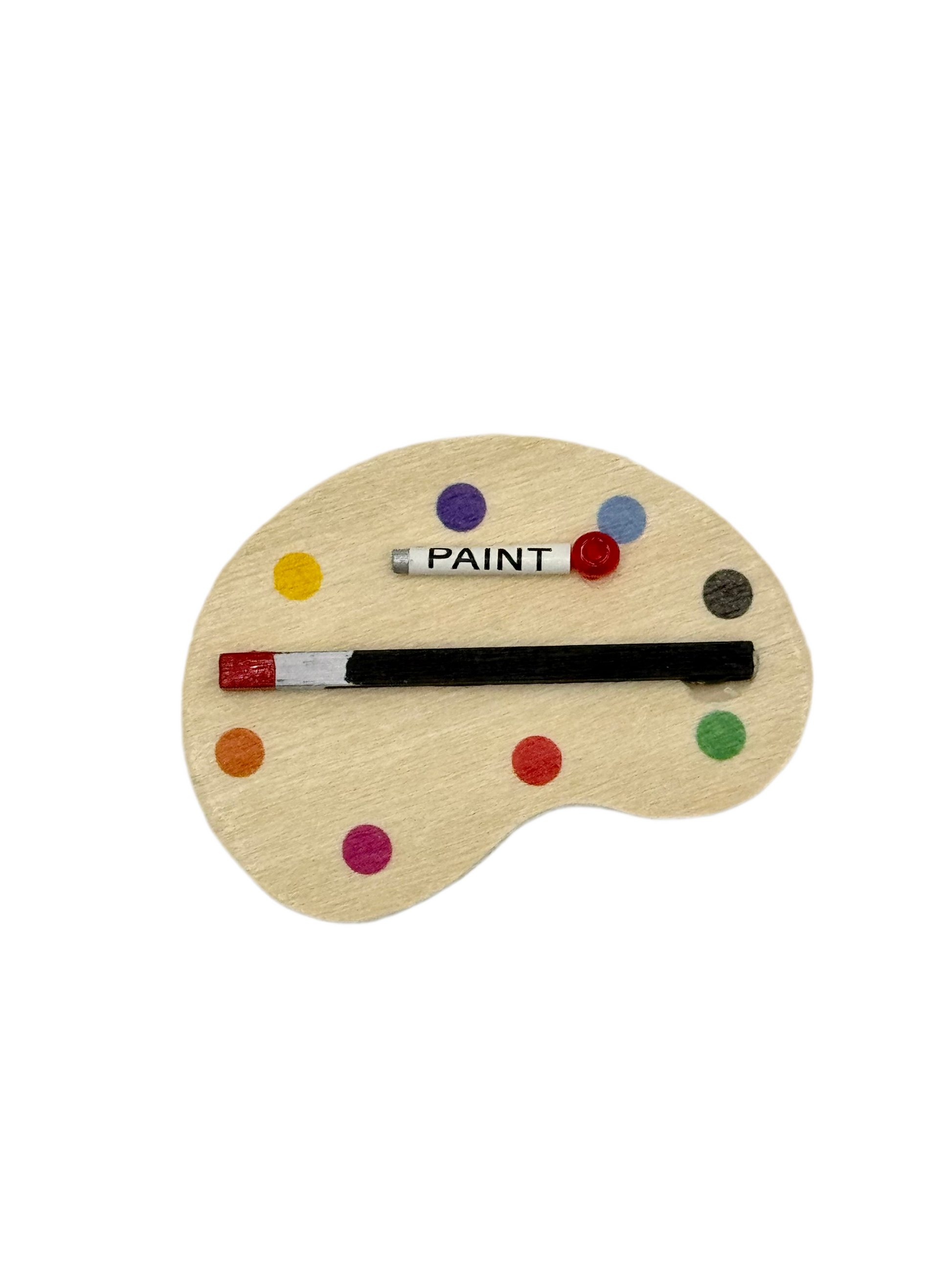 Entdecke unsere niedliche Miniatur Mal Palette, komplett mit winzigem Pinsel und Farbtube – das perfekte Zubehör für deine Wichteltür! Diese entzückende kleine Künstlerausstattung bringt magischen Bastelspaß in jede Wichtelwelt und lässt Kinderaugen leuchten. Ein zauberhaftes Detail für deine Wichteldekoration! 1:12