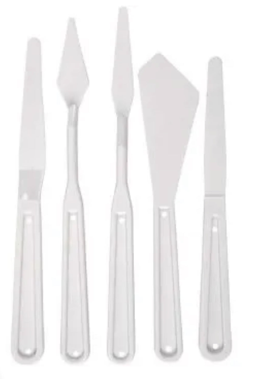 Mit dem Palettmesserset aus Kunststoff Pasten auf Keilrahmen aufbringen! Dieses Set besteht aus 5 Plastikmessern und ist perfekt zum Verteilen von Farbe und Pasten. Kreiere deinen eigenen Keilrahmen und bringe mit den Messern tolle Muster auf die Leinwand.