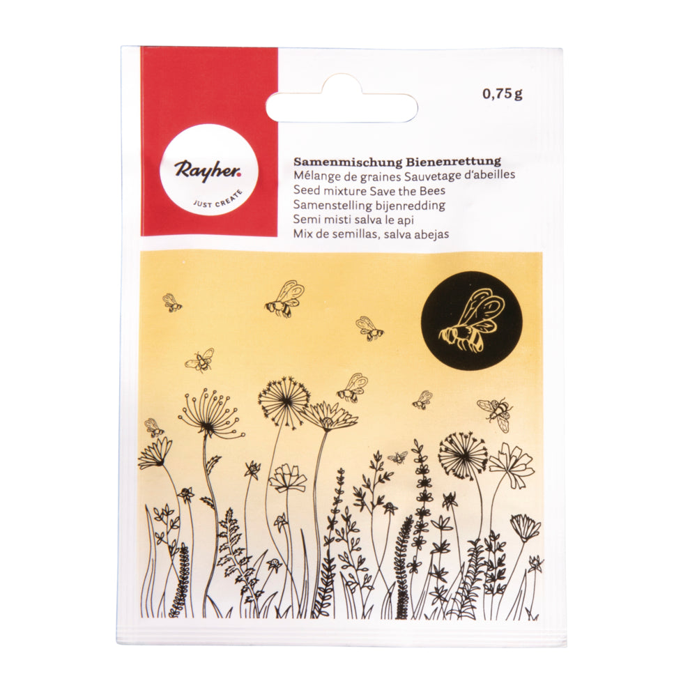 Rette die Bienen! Samenmischung mit Blumen, die Bienen lieben. Aussäen, feucht halten und es entsteht eine nektarreiche Nahrungsquelle für Bienen