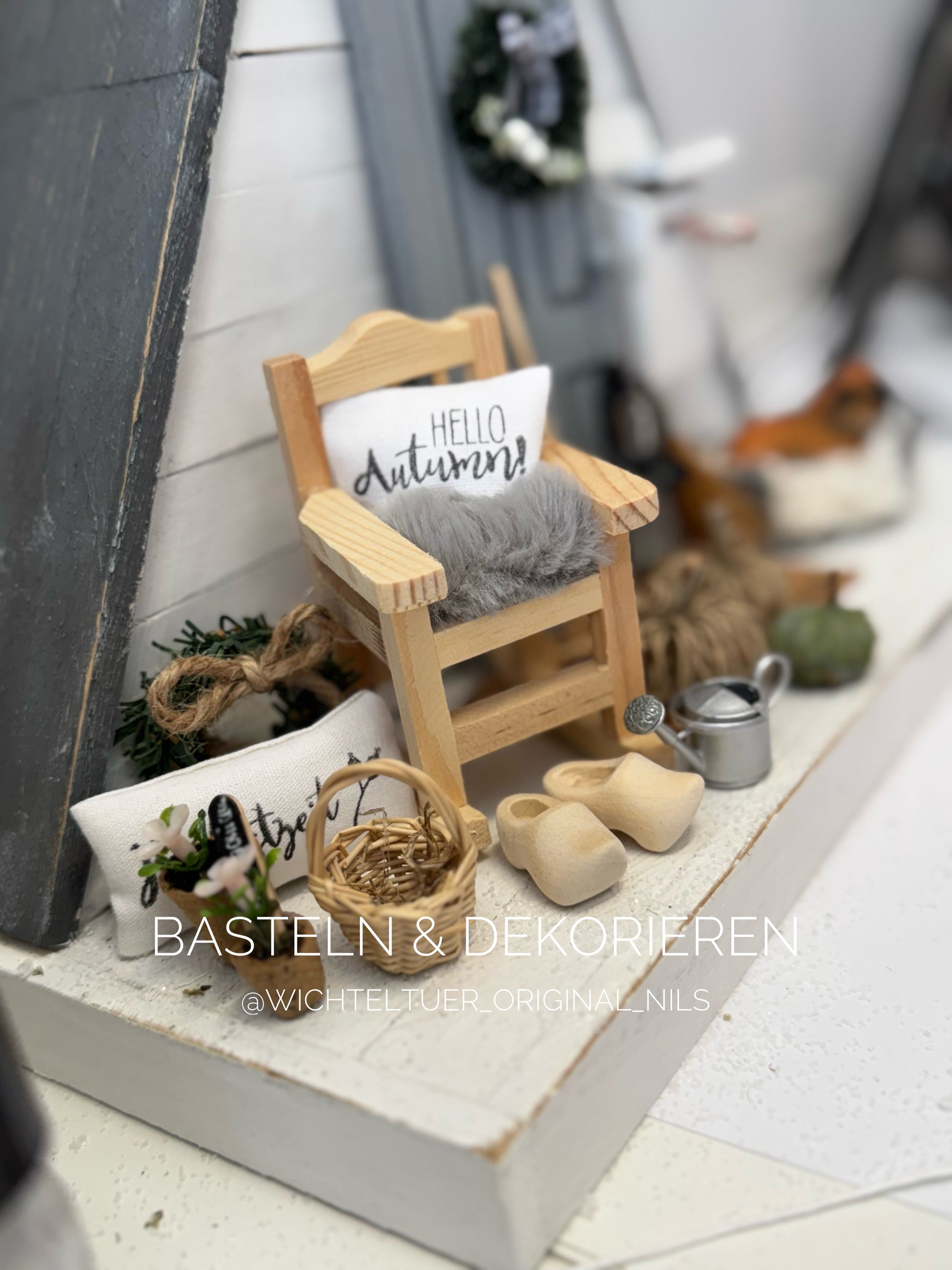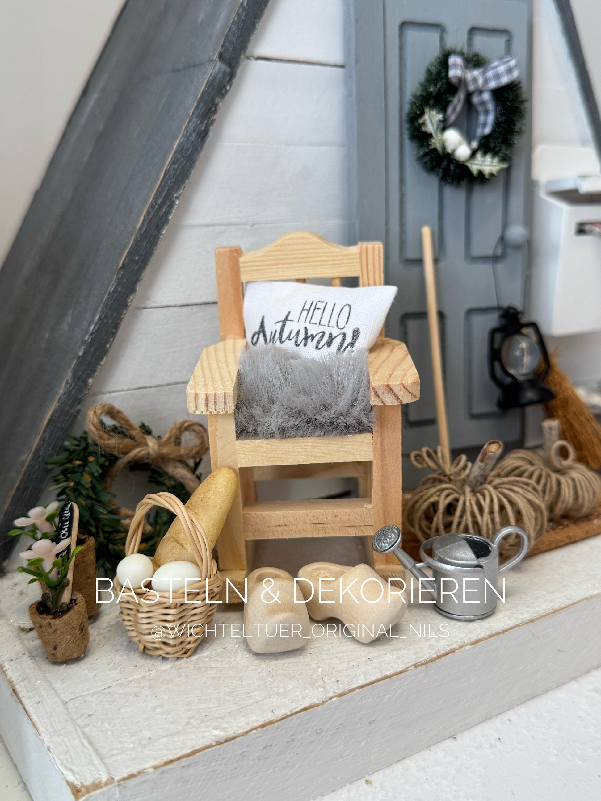 Gemütlicher Miniatur-Holzschaukelstuhls für kleine Wichtel! Perfekt für Wichteltüren, Puppenhäuser und Miniaturgärten, bietet dieser liebevoll gestaltete Schaukelstuhl eine gemütliche Sitzgelegenheit für Ihre kleinen Bewohner. Ob zum Entspannen auf der Veranda vom Wichtelchalet oder zum Ausruhen nach einem langen Backtag- dieser Miniatur-Holzschaukelstuhl ist ein bezauberndes Accessoire für jede Miniaturwelt. Supersüß mit unserem Fellband.