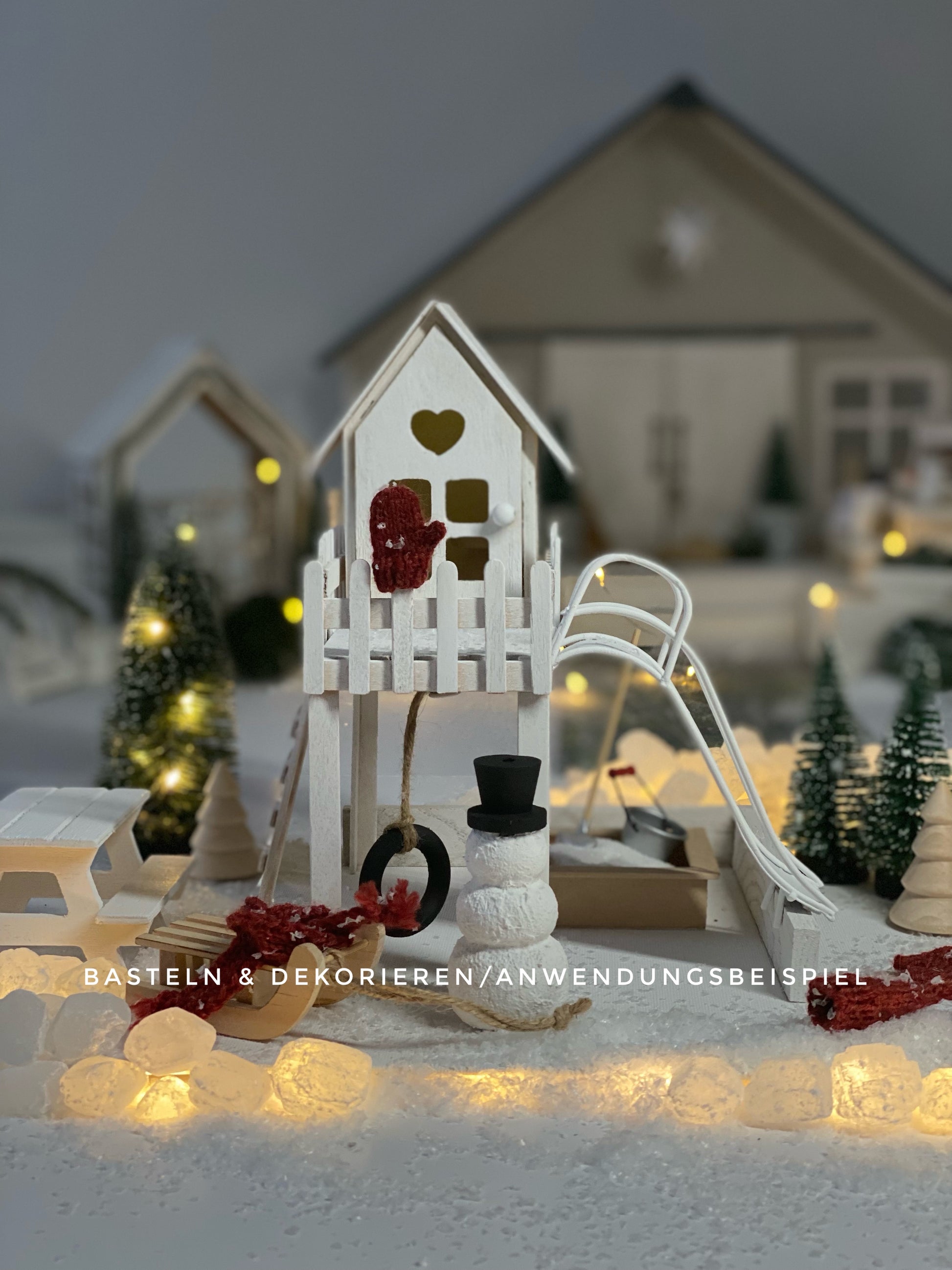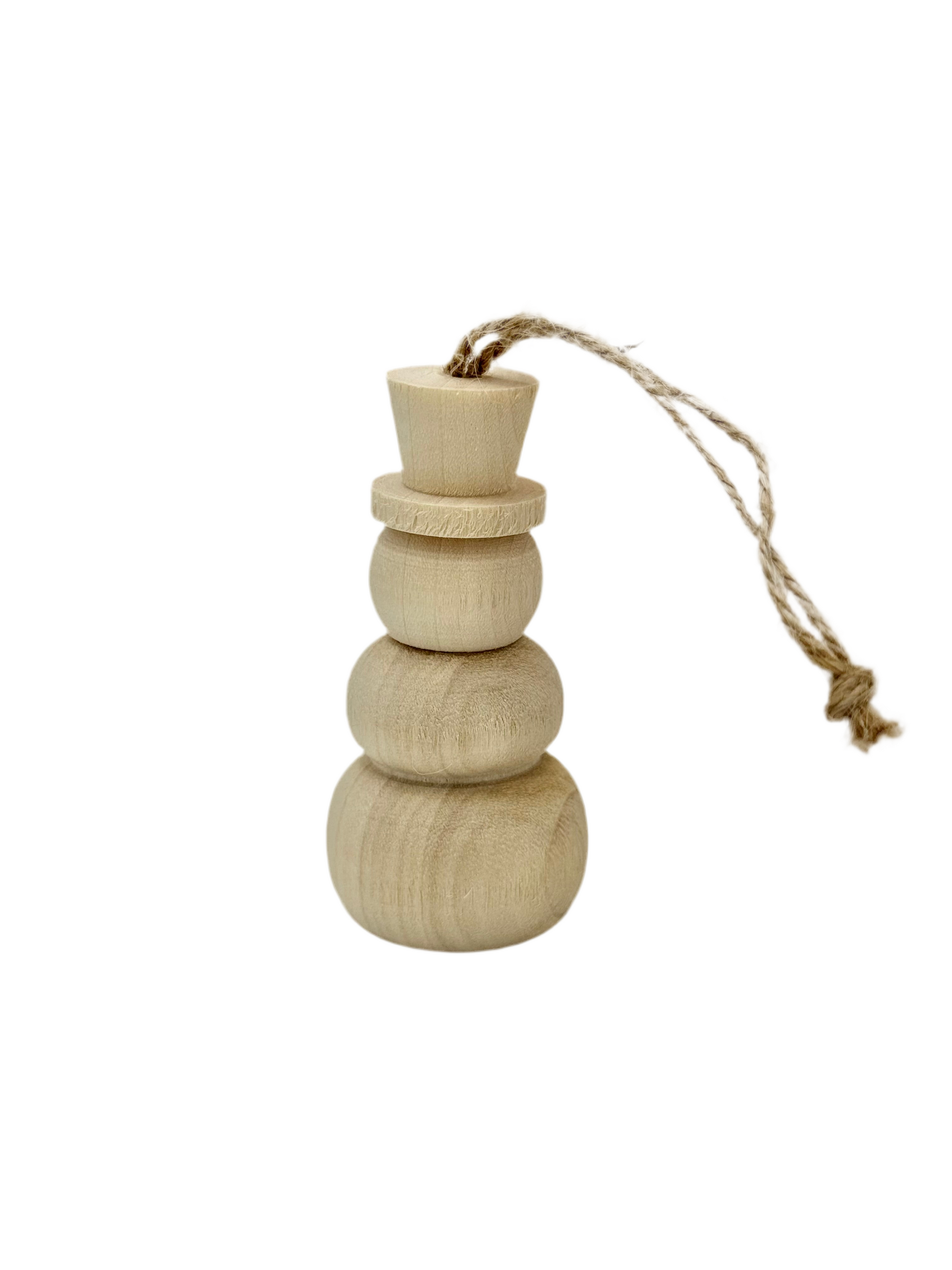 Miniatur Holzschneemann, für Miniaturwelten, wie Wichteltür, Puppenhaus, Mäusehaus und Elfentür. Zum Bemalen für Kinder und als Weihnachtsschmuck zum Anhängen geeignet.