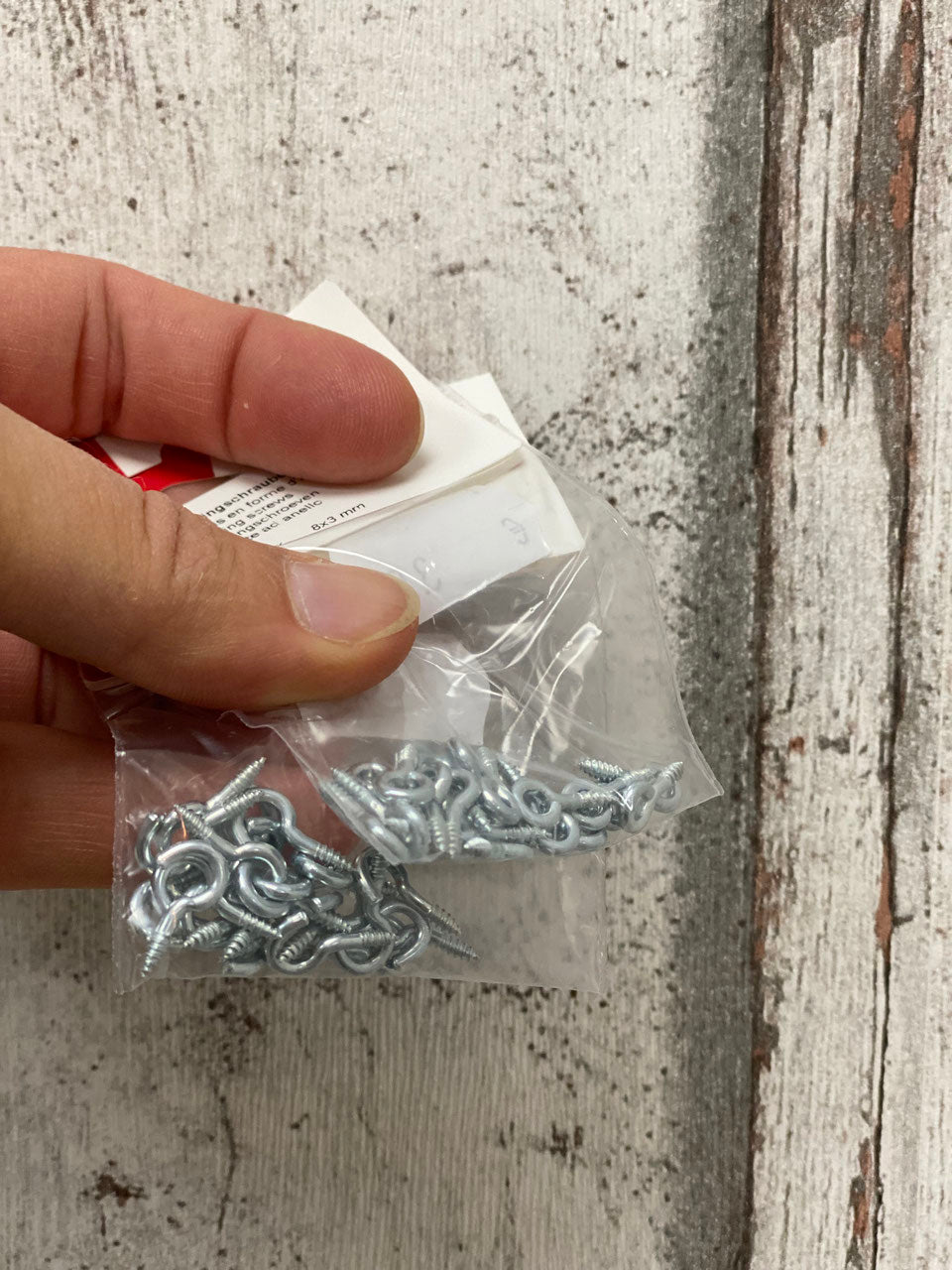 Schraubhaken und Ringösen als Verbinder von Klötzchen und Holzstäbchen. Im Kulissenbau zur Montage von Schiebetüren.
