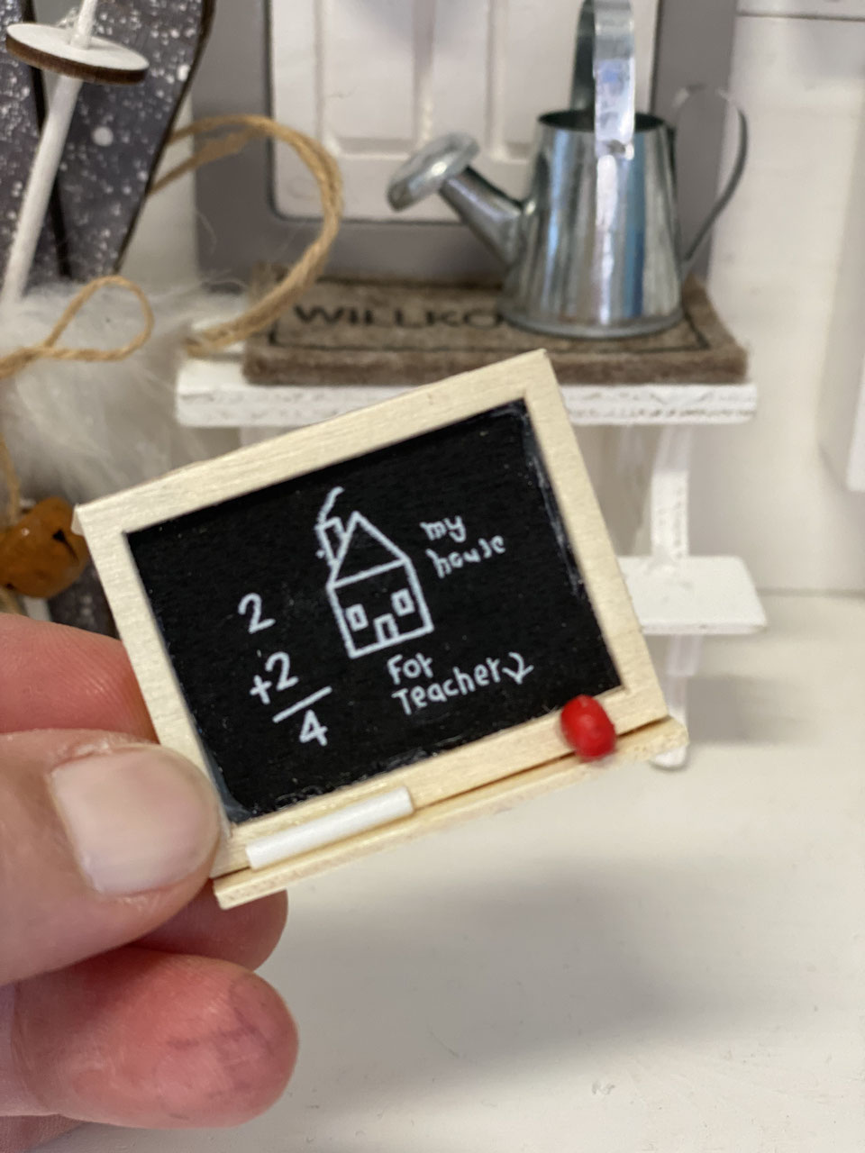 Diese niedliche Miniatur-Schultafel kommt komplett mit rotem Schwamm und Kreide – perfekt für Ihre Wichtelszenen zur Einschulung! Das winzige Klassenzimmerzubehör zaubert nostalgische Schulatmosphäre in Ihre Dekorationen und lässt kleine Wichtel zu eifrigen Schülern werden. Ein zauberhaftes Detail für Ihre fantasievollen Wichtelwelten!