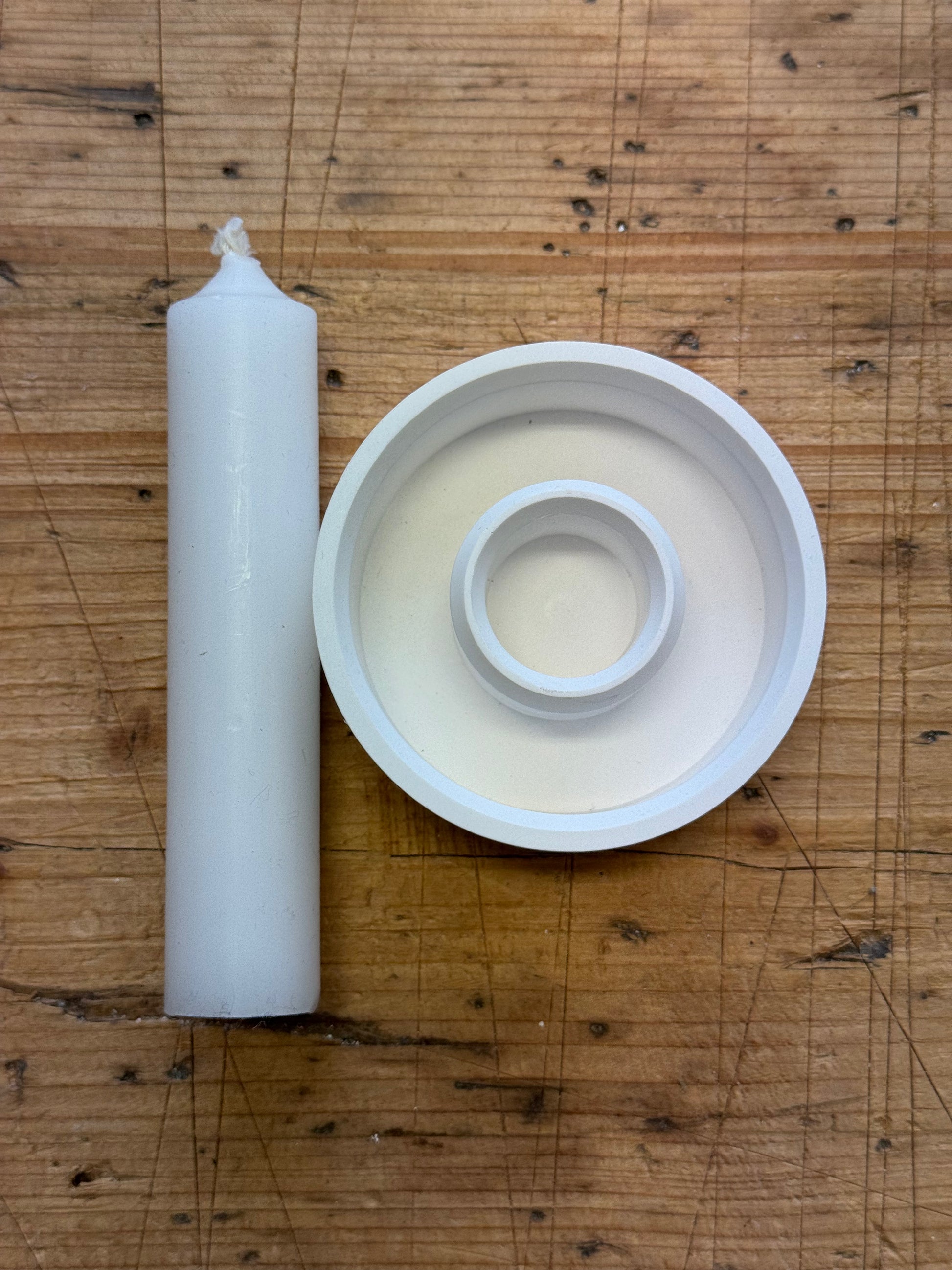 Tischedekoration, schlichte Kerzen, geeignet zum Verzieren mit bestempelter oder bedruckter Schiebefolie.