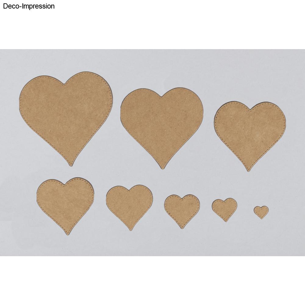 Größen der 8 einzelnen Herzen: 1,2x1,3cm, 2,2x2,3cm, 3,1x3,3cm, 4,1x4,2cm, 5,2x5,4cm, 6,3x6,4cm, 7,4x7,6cm, 8,4x8,5cm