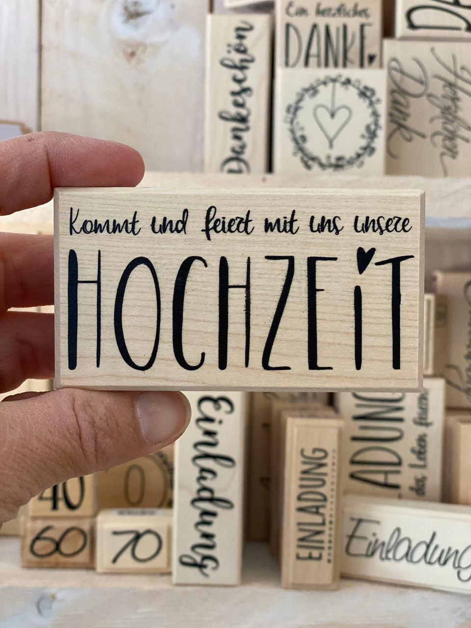 Komm und feiere mit uns! Mit unserem "Stempel" kannst du ganz einfach Einladungen, Dankeskarten und mehr gestalten. Lass deiner Kreativität freien Lauf und verleihe deiner Hochzeit eine persönliche Note.