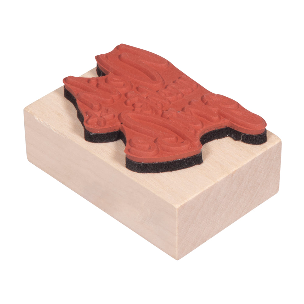 Der handliche Holzgriff liegt bequem und leicht in der Hand und stammt von nachhaltig zertifiziertem Holz. Zudem wird der Stempel ausschließlich in Deutschland produziert.