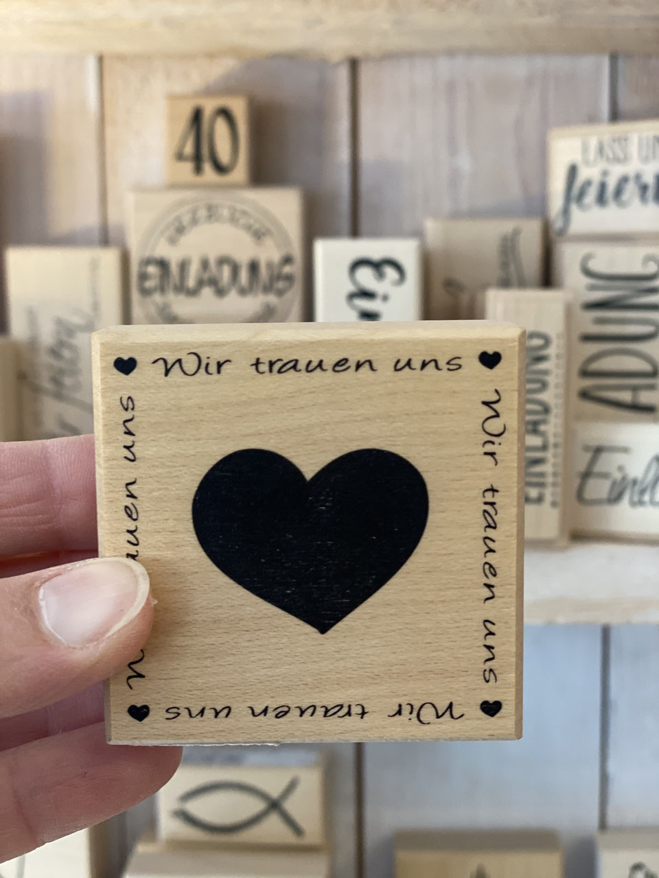 Stempel mit Herz für unvergessliche Momente. Vereinfacht das Gestalten von Einladungskarten oder Geschenken. Zeigt Liebe und Sorgfalt im Detail. Mit dem Stempel Wir trauen uns kannst du deine Kreativität zum Ausdruck bringen.