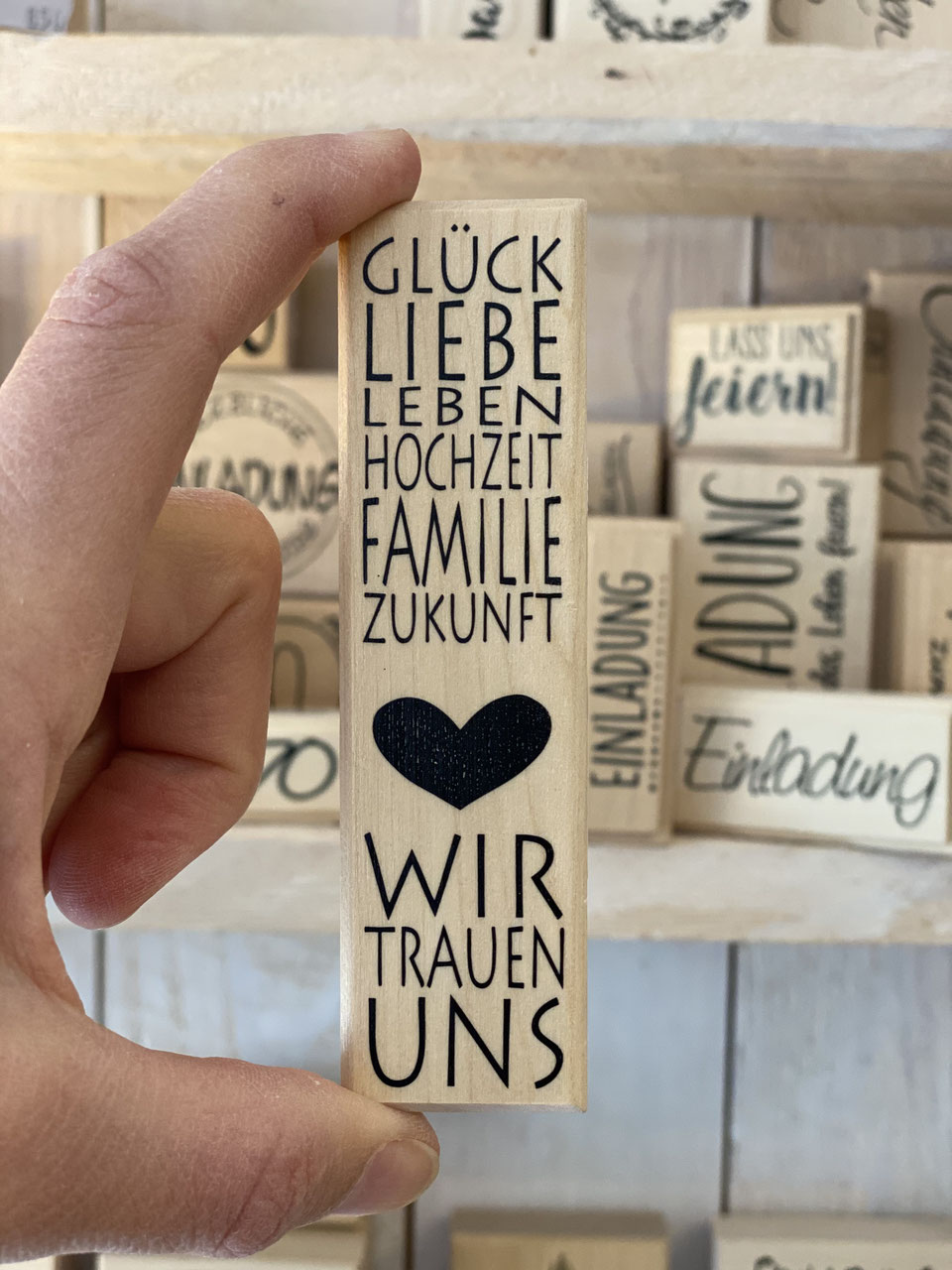 Stempel deine Liebe mit Stempel Wir trauen uns! Verleihe deiner Hochzeitseinladung einen Hauch von Glück und Liebe mit unseren einzigartigen Stempeln. Einfach - und doch so besonders.
