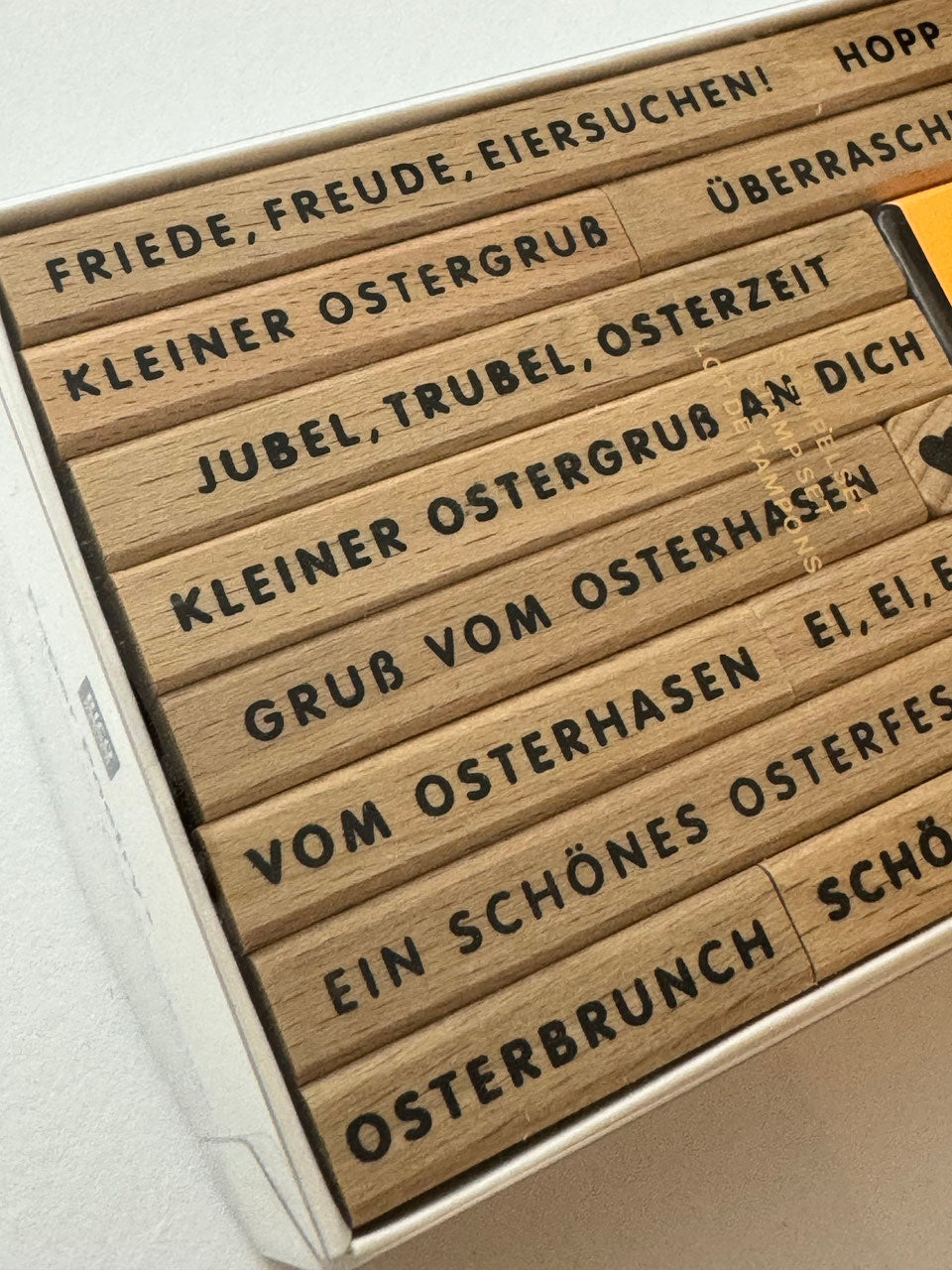 Verschiedene Osterstempel mit schwarzem Stempelkissen, für Osterkarten, Geschenkverpackungen und Osternester