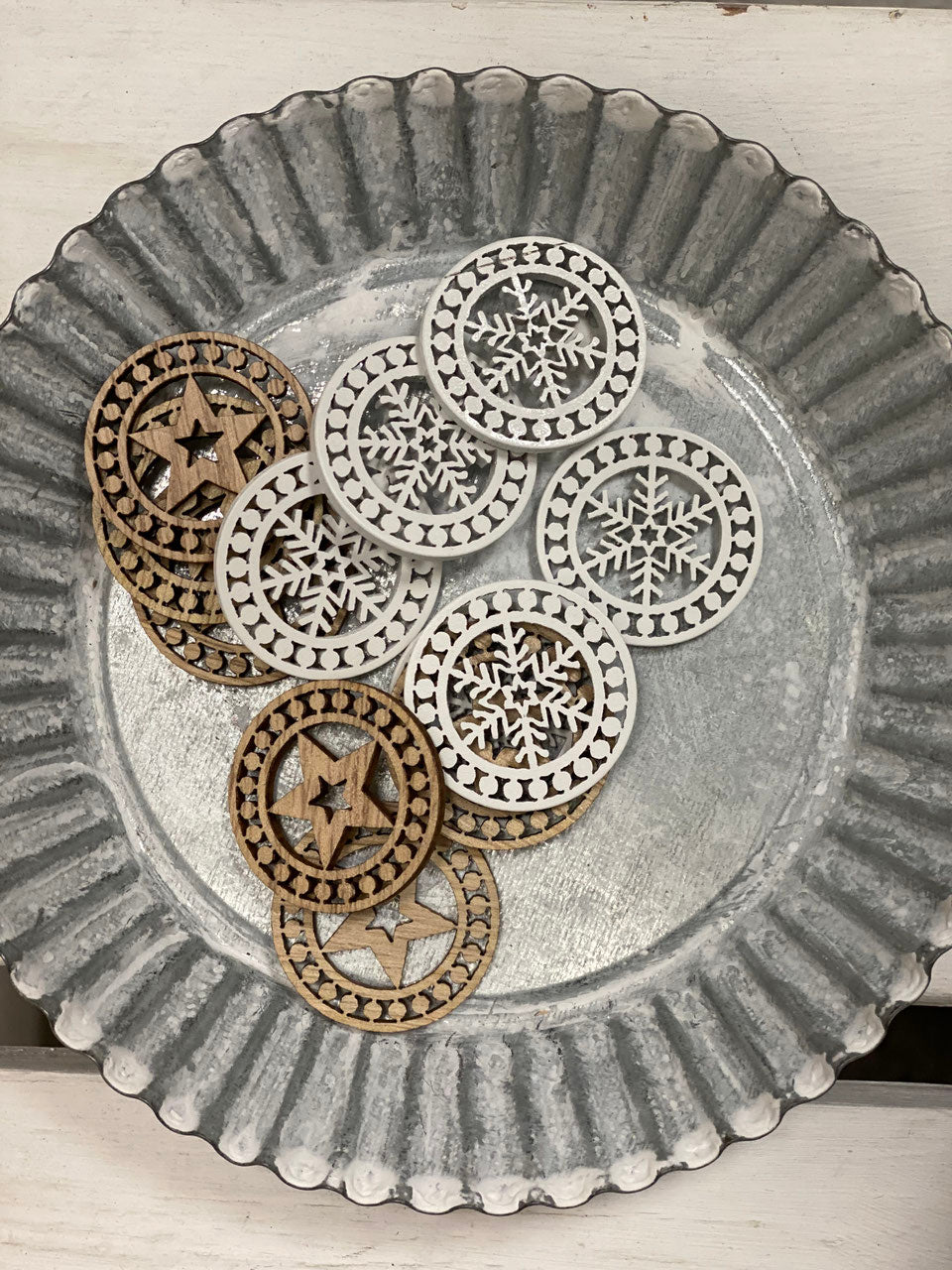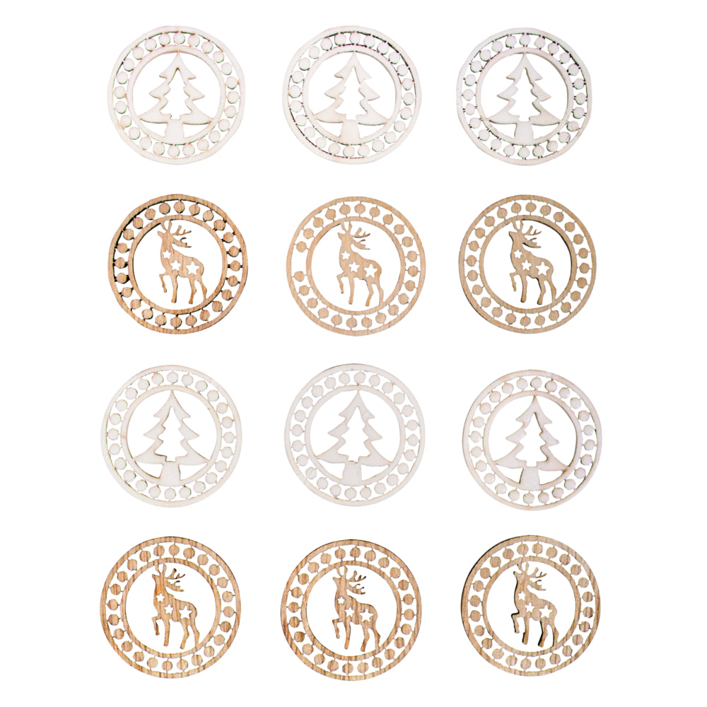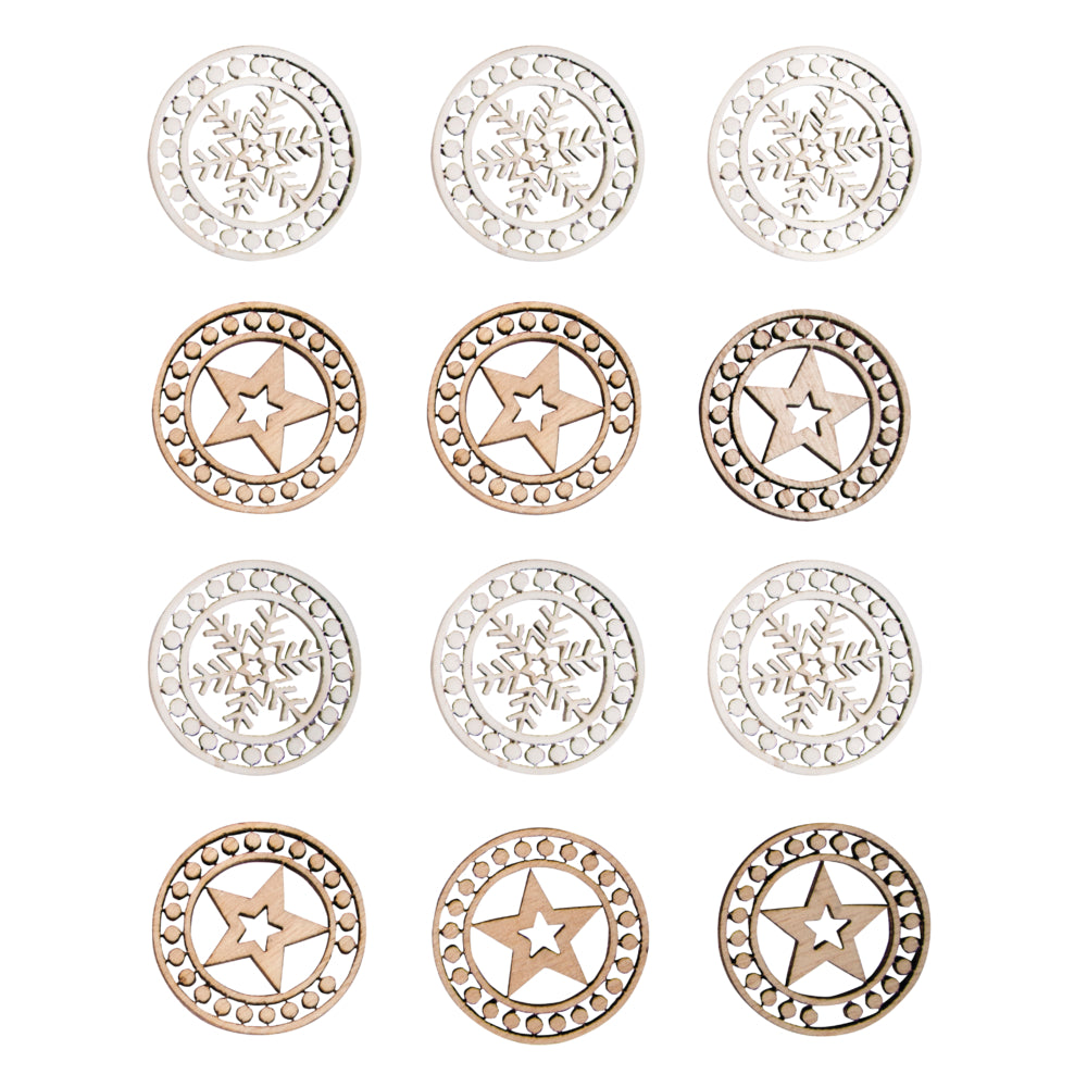 Holzstreuteile Weihnachten, verschiedene Sorten zur Dekoration an der Wichteltür und am Puppenhaus. Weiß/Natur 3,2 cm sortiert im Beutel