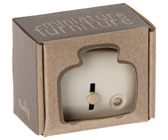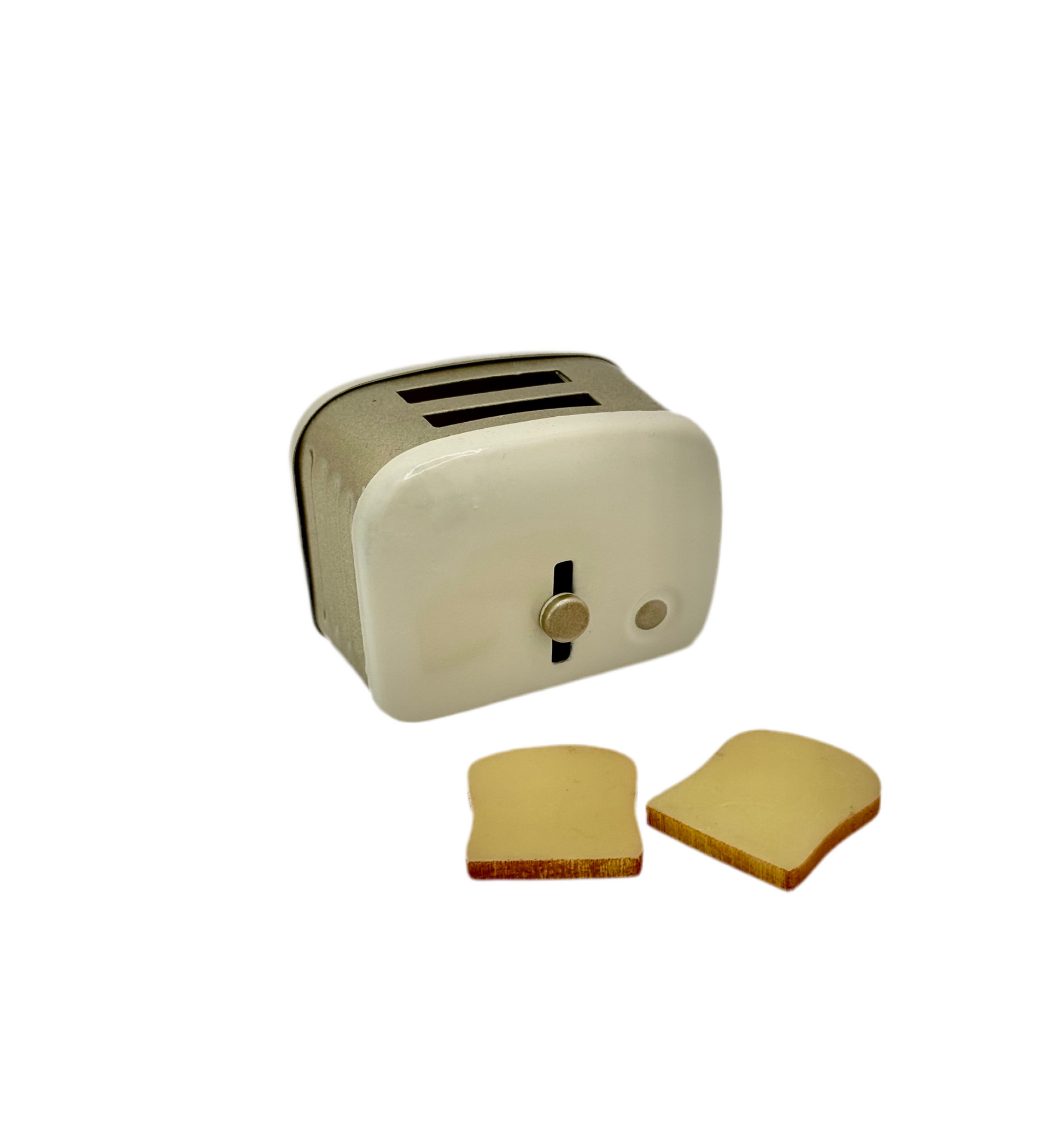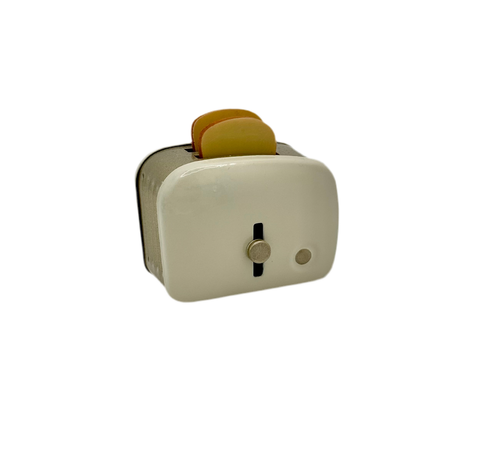 Entdecke das Maileg Miniatur Toaster Set für die Puppenstube! Dieses charmante Set enthält einen stilvollen Toaster aus Metall in Creme, sowie zwei lecker aussehende Toastbrote. Perfekt für ein kreatives und realistisches Spiel in der Welt deiner Puppenstube. Lass deine Puppen ein Frühstück wie die Großen genießen!