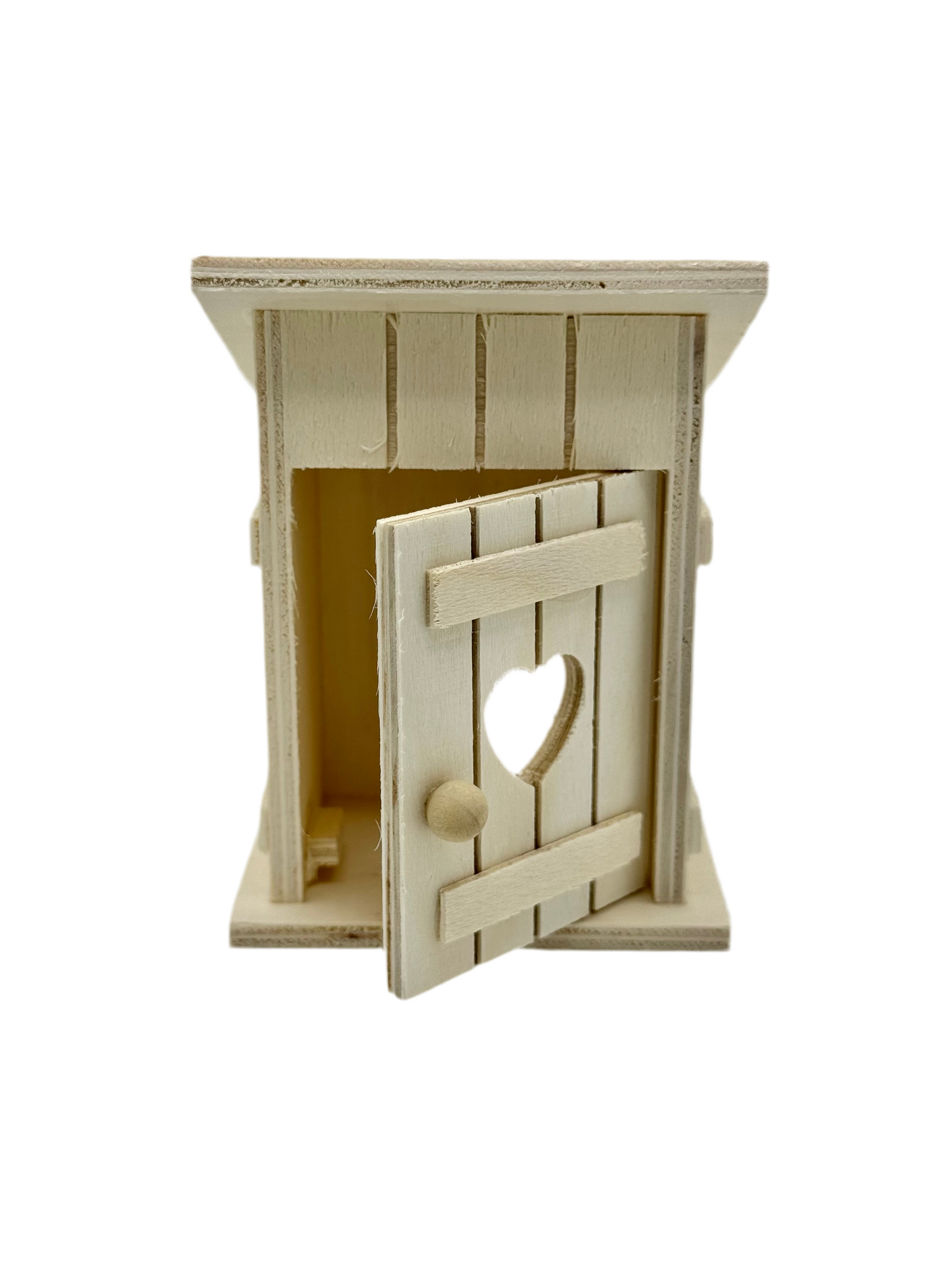 Dieses entzückende Toilettenhäuschen mit Herzausschnitt ist das perfekte Accessoire für deine Wichtelwelt! Als vielseitiges Miniatur-Holzhäuschen kann es nicht nur als niedliches Örtchen dienen, sondern auch als Gartenhaus, Umkleide oder Geräteschuppen umfunktioniert werden. Personalisiere es mit unseren Acrylfarben und zaubere ein einzigartiges Schmuckstück für deine Miniaturlandschaft!