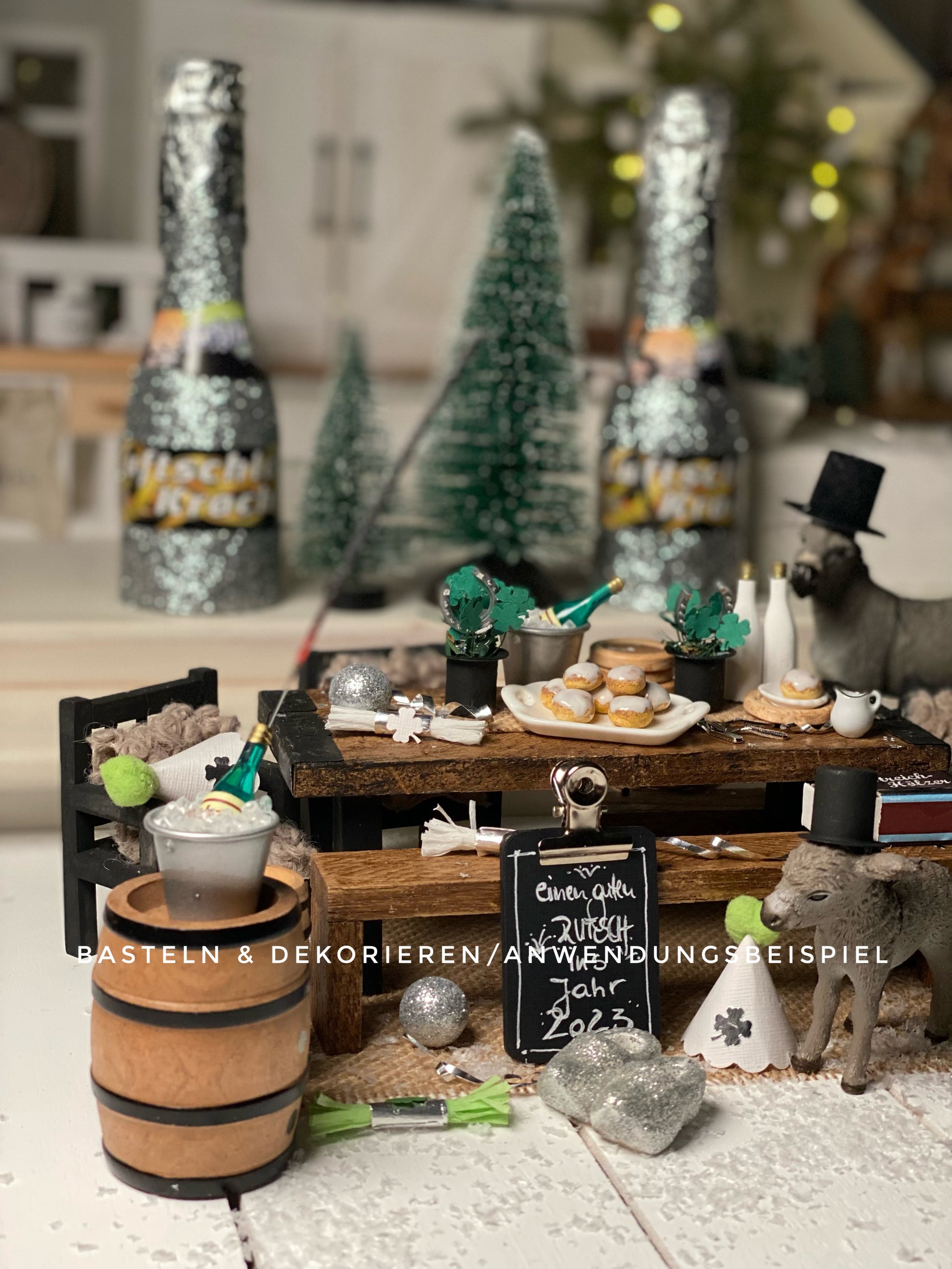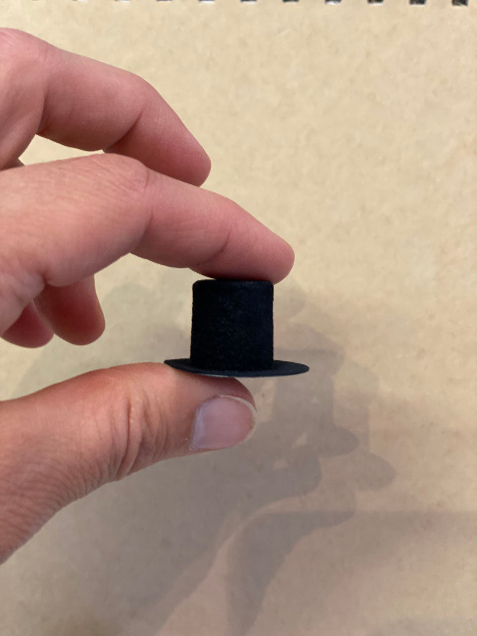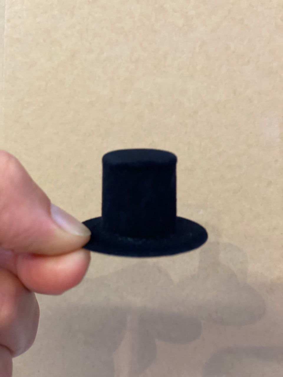 Zylinder in verschiedenen Größen, schwarz beflockt. Witzige Dekoration für Hochzeitsgeschenke und Silvester an der Wichteltür.