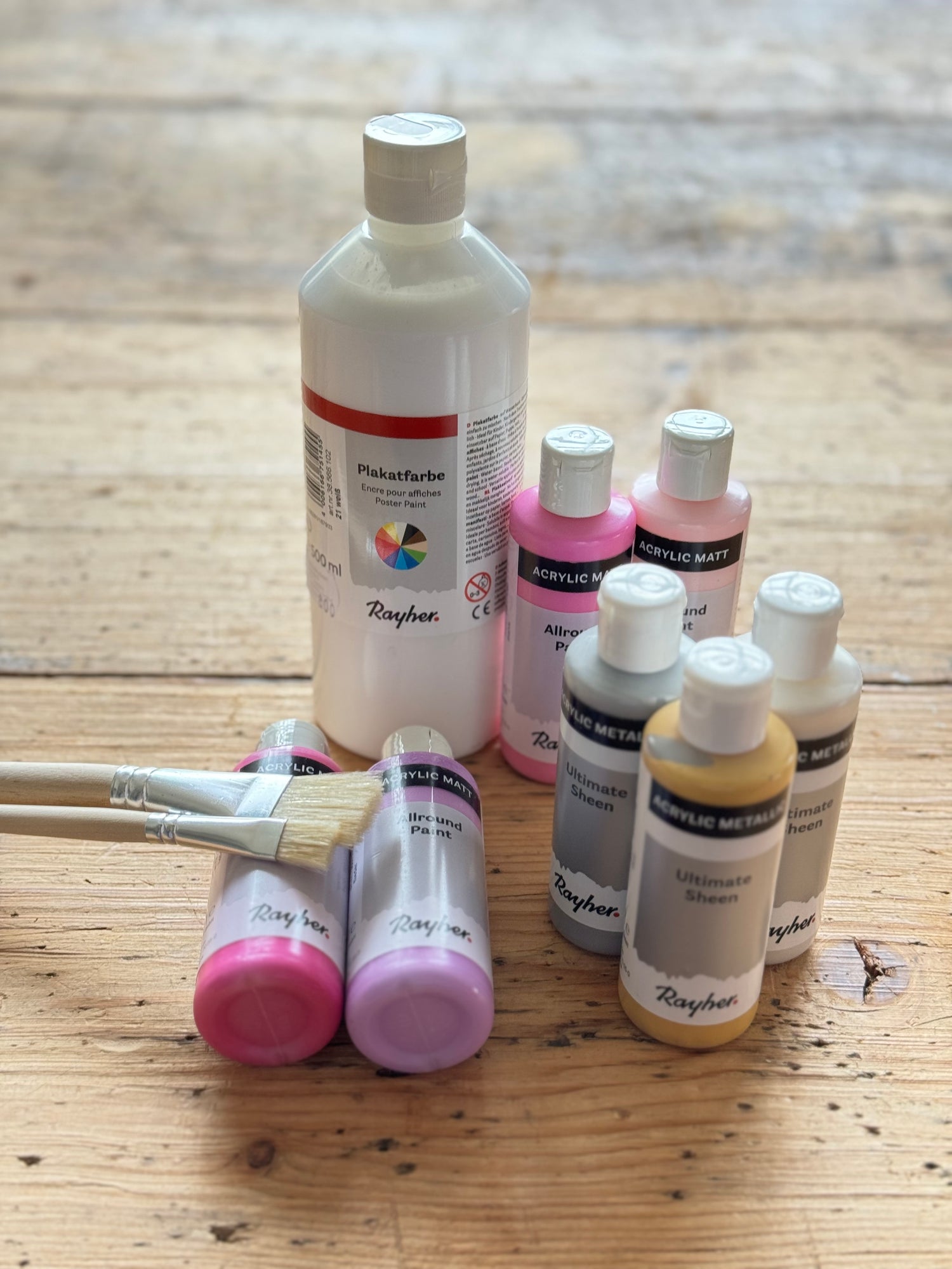 Hier findest du unsere hochwertigen Acryl Bastelfarben für eine Vielzahl von kreativen Projekten. Geeignet zum Bemalen von Holzschachteln, Papierartikeln und Holzdekorationen wie beispielsweise Wichtelhäusern. Unsere Kreidefarben erzeugen mit ihrer matten Optik einen besonders coolen Effekt. Wähle aus unseren glänzenden und matten Lacken, um Oberflächen zu versiegeln und zu schützen. Verwende unsere Stoffmalfarben und Stifte in Kombination mit Schablonen, um individuelle Designs auf Stofftaschen, Geschirrtüchern und Beuteln zu kreieren. Für die kleinen Künstler bieten wir eine Auswahl an Fingerfarben und Glitzerfarben, die das Basteln zu einem funkelnden Erlebnis machen. Darüber hinaus bieten wir spezielle Betonfarben und Rostfarben für Projekte im Außenbereich an.